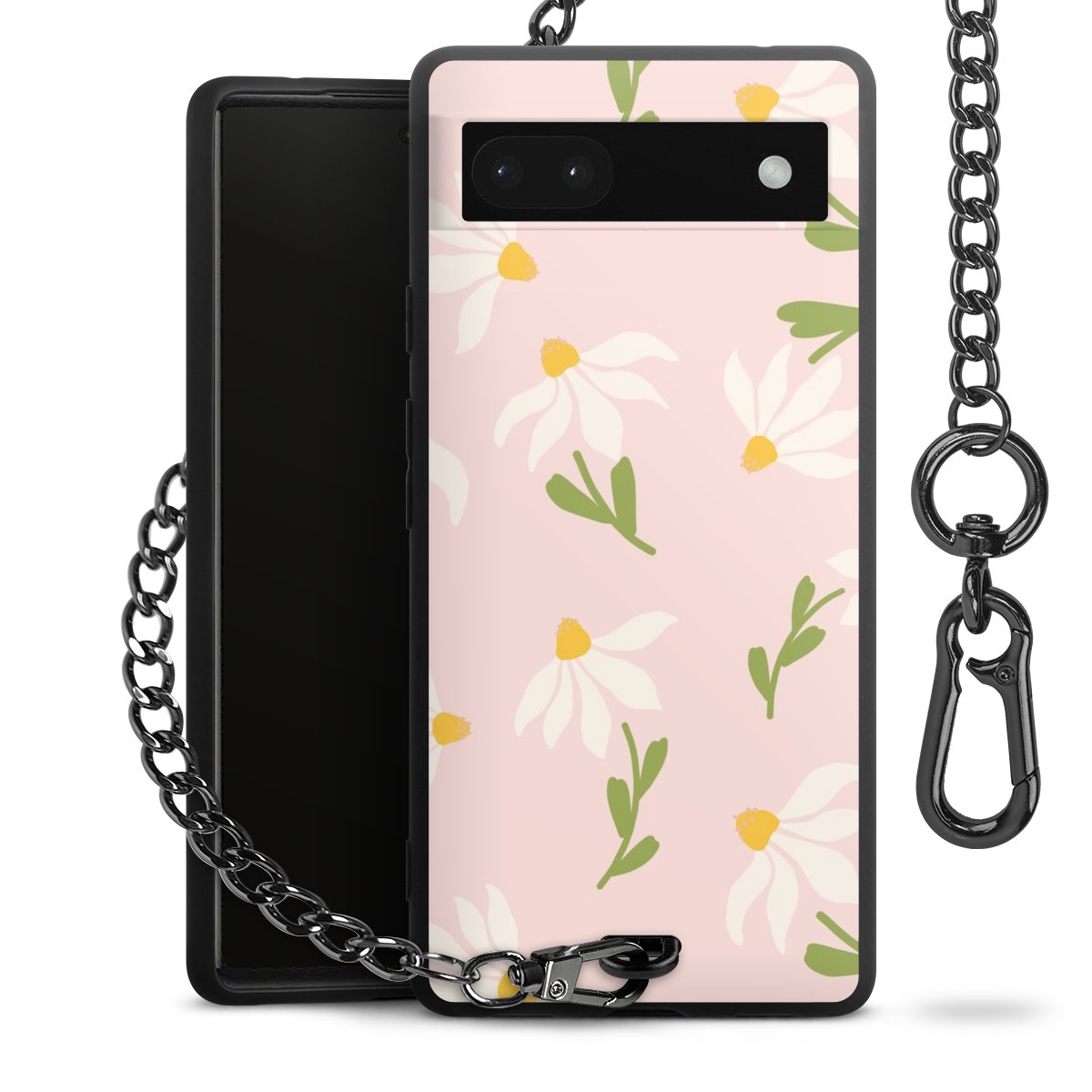 • Mattschwarze Handyhülle mit Metallkette