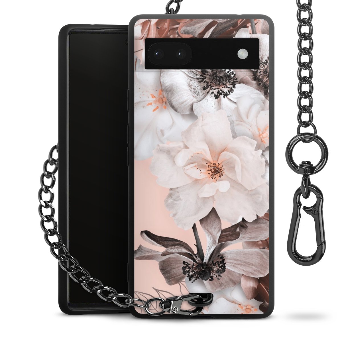 • Mattschwarze Handyhülle mit Metallkette