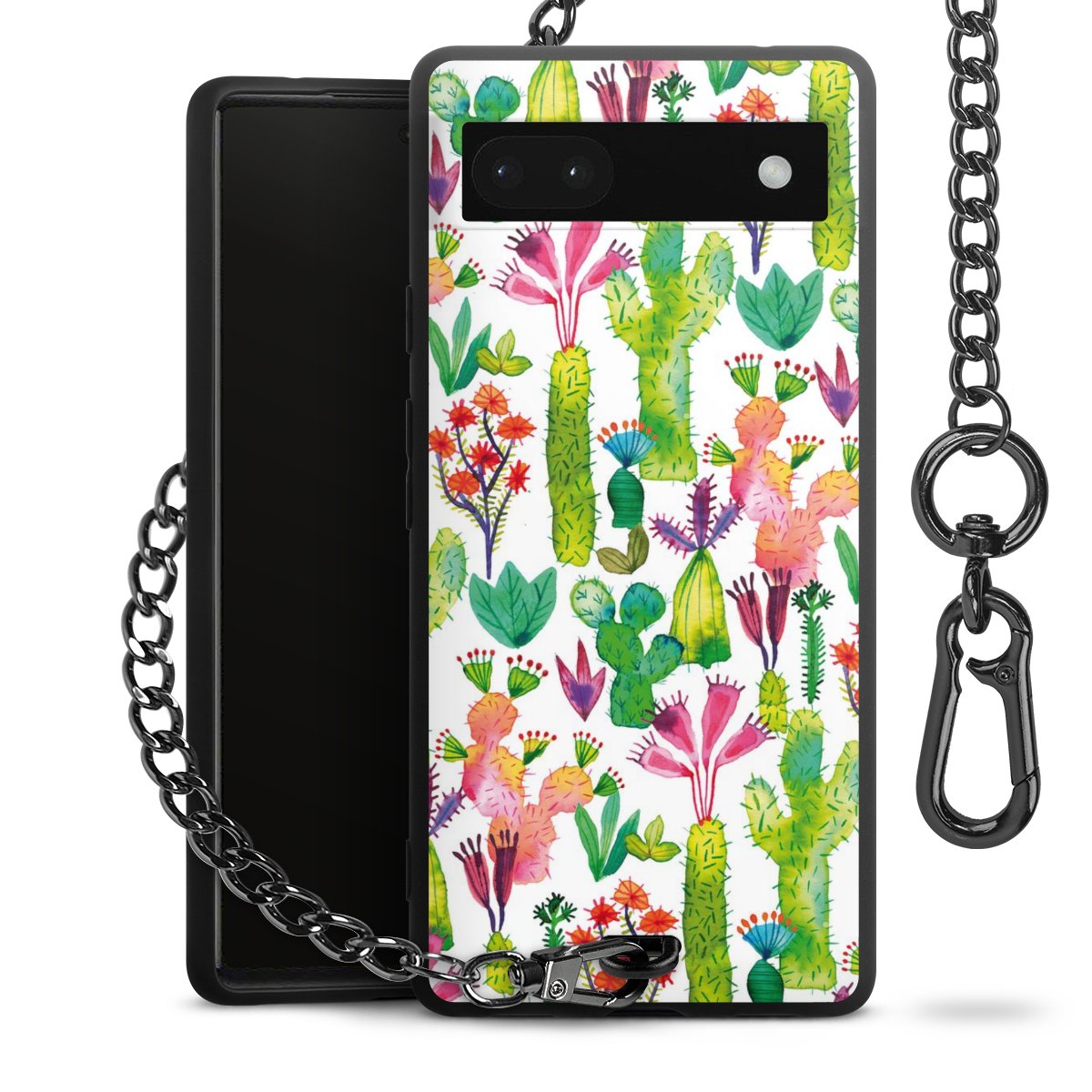 Die mattschwarze Silikon-Handyhülle besteht aus robustem TPU (thermoplastisches Polyurethan). Sie ist flexibel und schützt Dein Smartphone vor Stößen und Kratzern. Die Kette sowie der Karabinerhaken sind aus Metall in Gunmetal-Optik gefertigt. Für dieses Produkt kommen ausschließlich TÜV-geprüfte Materialien zum Einsatz.