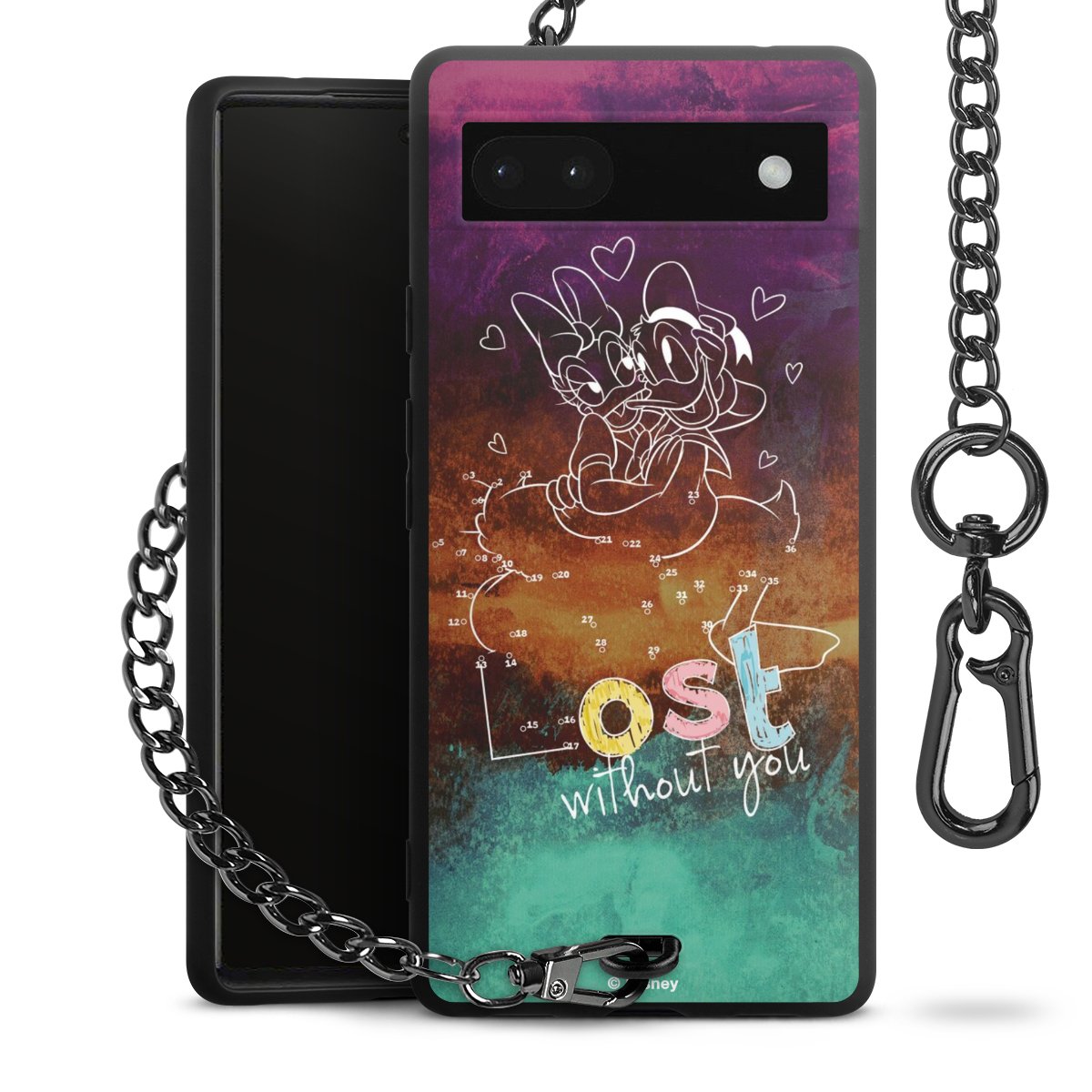 Die mattschwarze Silikon-Handyhülle besteht aus robustem TPU (thermoplastisches Polyurethan). Sie ist flexibel und schützt Dein Smartphone vor Stößen und Kratzern. Die Kette sowie der Karabinerhaken sind aus Metall in Gunmetal-Optik gefertigt. Für dieses Produkt kommen ausschließlich TÜV-geprüfte Materialien zum Einsatz.