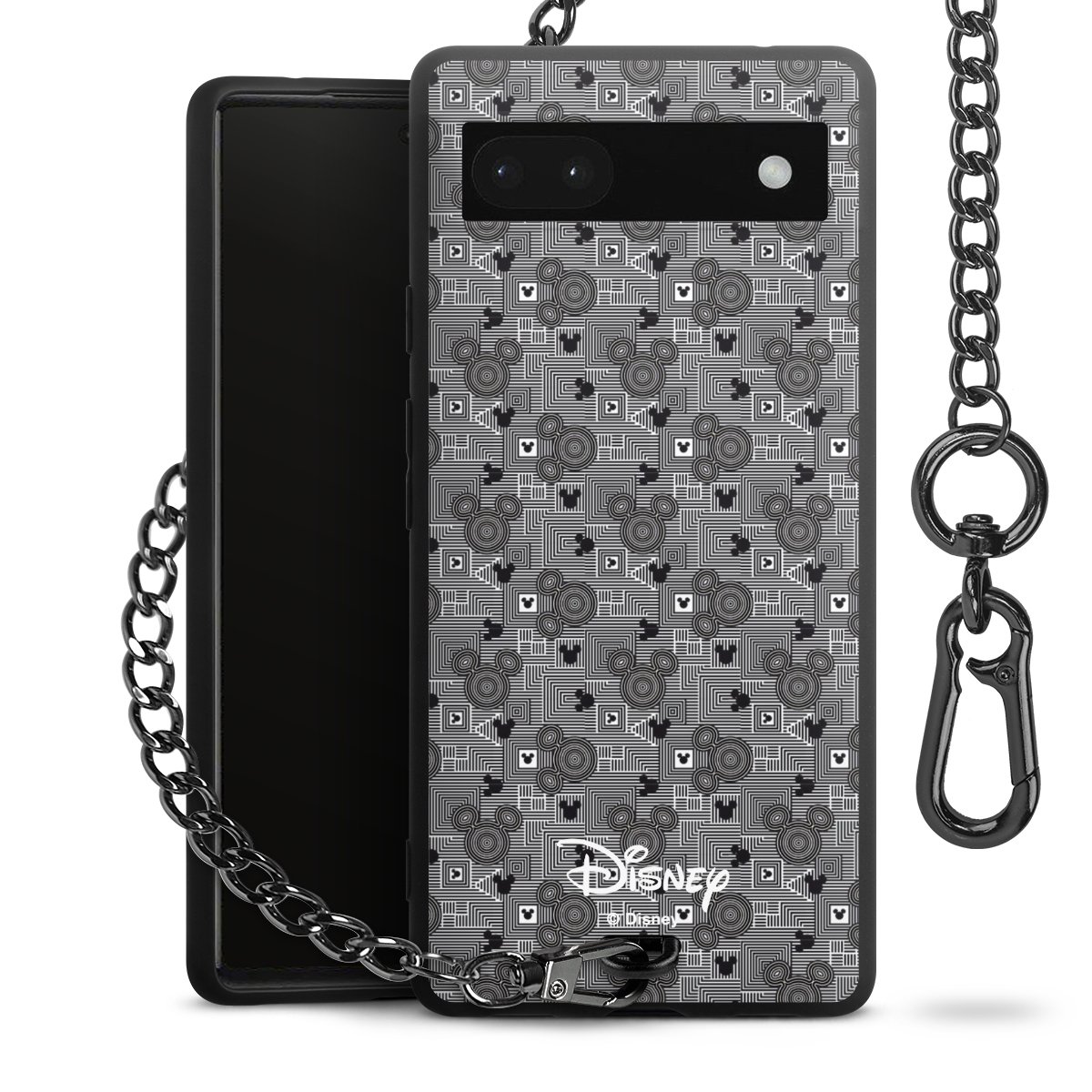 Die mattschwarze Silikon-Handyhülle besteht aus robustem TPU (thermoplastisches Polyurethan). Sie ist flexibel und schützt Dein Smartphone vor Stößen und Kratzern. Die Kette sowie der Karabinerhaken sind aus Metall in Gunmetal-Optik gefertigt. Für dieses Produkt kommen ausschließlich TÜV-geprüfte Materialien zum Einsatz.