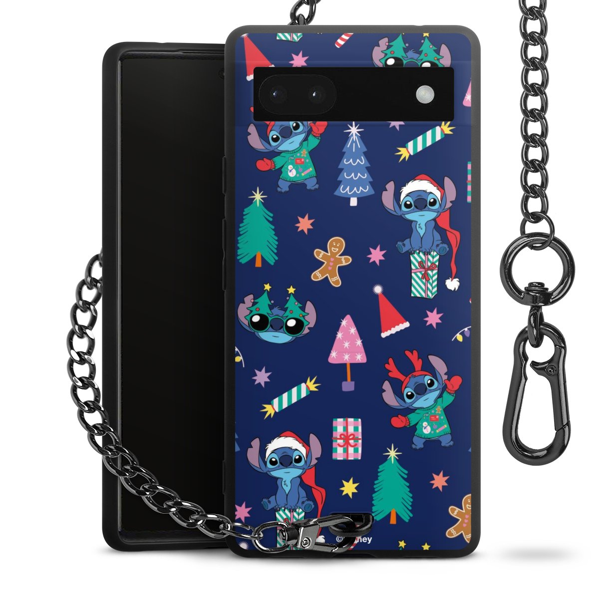 Die Handyhülle verfügt über eine mittig am unteren Rand platzierte Öse, an der die Metallkette stabil befestigt ist. Bestelle die Hülle einfach für Dein Smartphone-Modell, dann passt sie wie angegossen und Du brauchst sie bloß einmal anzudrücken. Handy in die Tasche, Karabiner an den Hosenbund – schon kann die Party starten.