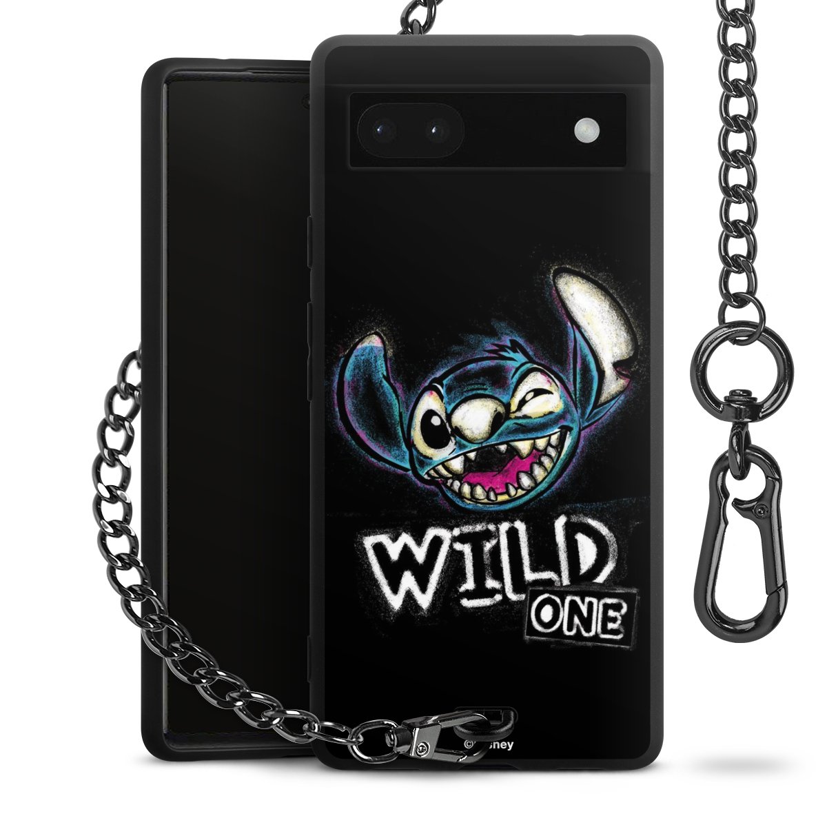 Die Handyhülle verfügt über eine mittig am unteren Rand platzierte Öse, an der die Metallkette stabil befestigt ist. Bestelle die Hülle einfach für Dein Smartphone-Modell, dann passt sie wie angegossen und Du brauchst sie bloß einmal anzudrücken. Handy in die Tasche, Karabiner an den Hosenbund – schon kann die Party starten.