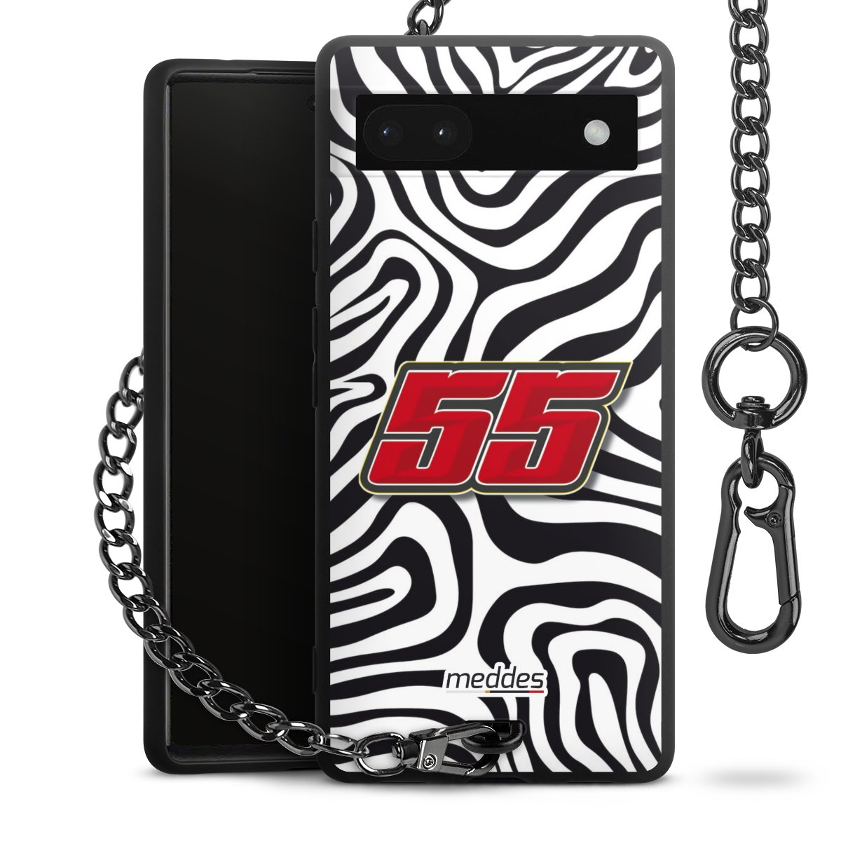 • Mattschwarze Handyhülle mit Metallkette