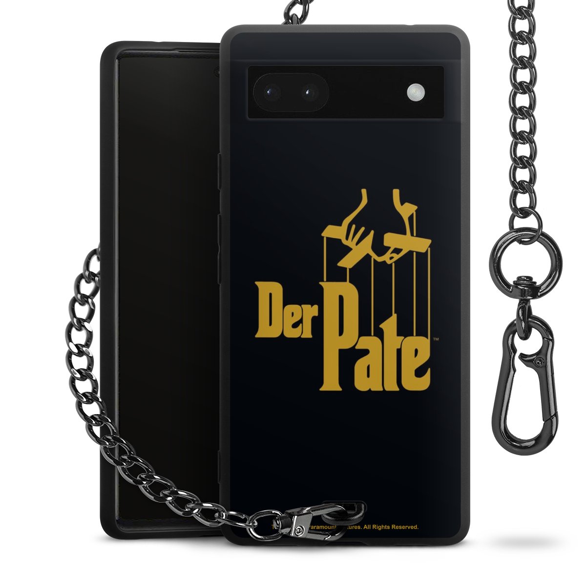 Die mattschwarze Silikon-Handyhülle besteht aus robustem TPU (thermoplastisches Polyurethan). Sie ist flexibel und schützt Dein Smartphone vor Stößen und Kratzern. Die Kette sowie der Karabinerhaken sind aus Metall in Gunmetal-Optik gefertigt. Für dieses Produkt kommen ausschließlich TÜV-geprüfte Materialien zum Einsatz.