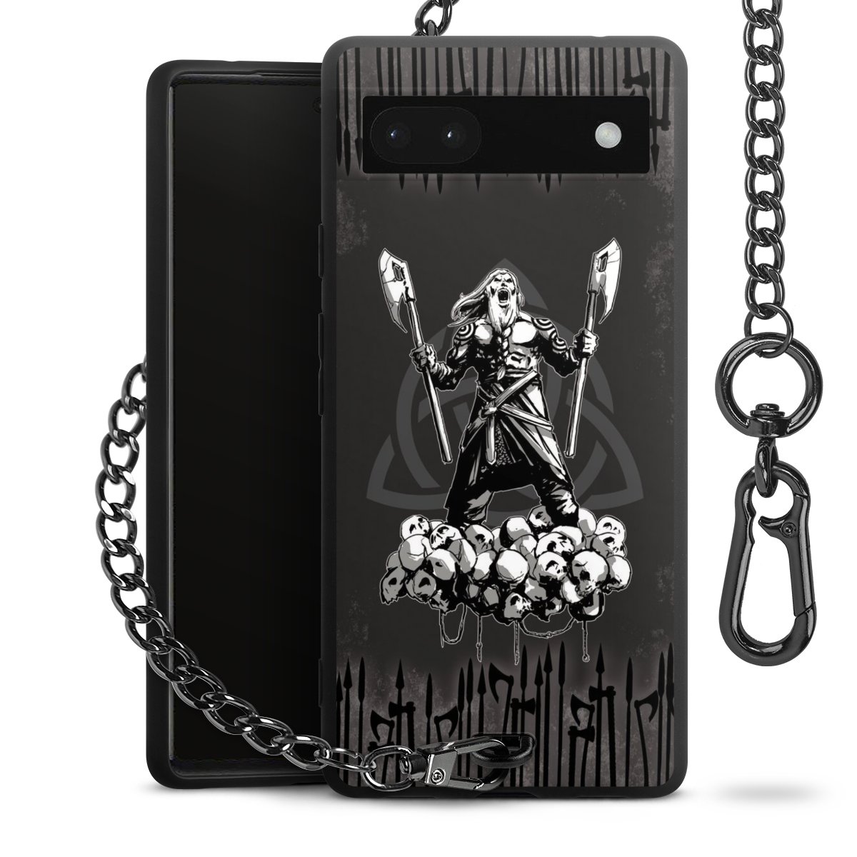 Die mattschwarze Silikon-Handyhülle besteht aus robustem TPU (thermoplastisches Polyurethan). Sie ist flexibel und schützt Dein Smartphone vor Stößen und Kratzern. Die Kette sowie der Karabinerhaken sind aus Metall in Gunmetal-Optik gefertigt. Für dieses Produkt kommen ausschließlich TÜV-geprüfte Materialien zum Einsatz.