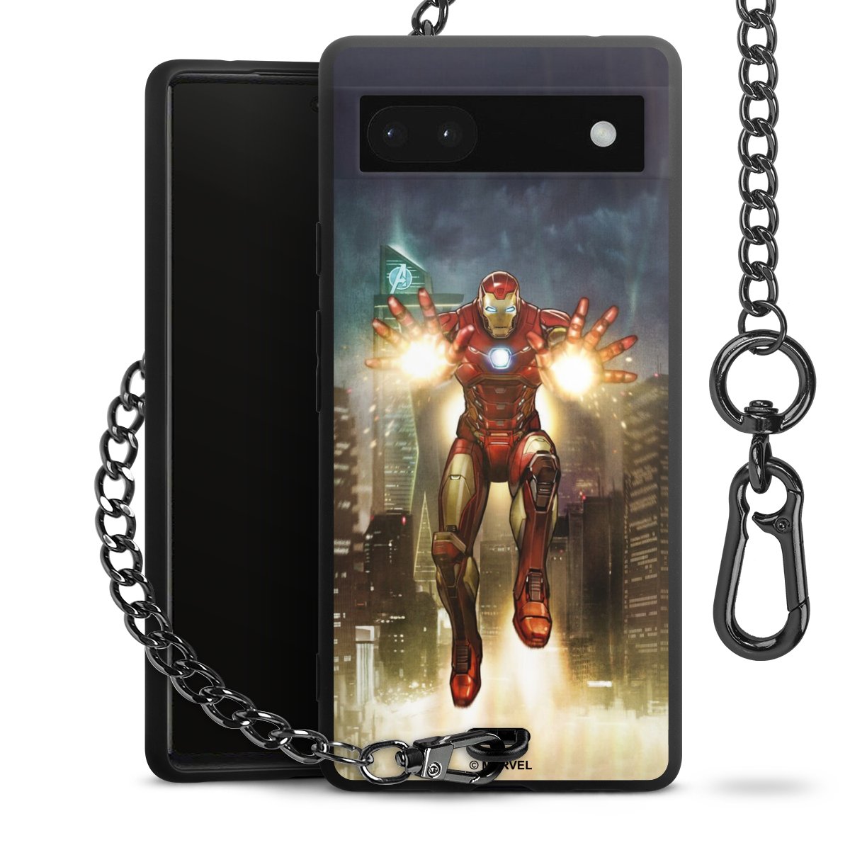 Die mattschwarze Silikon-Handyhülle besteht aus robustem TPU (thermoplastisches Polyurethan). Sie ist flexibel und schützt Dein Smartphone vor Stößen und Kratzern. Die Kette sowie der Karabinerhaken sind aus Metall in Gunmetal-Optik gefertigt. Für dieses Produkt kommen ausschließlich TÜV-geprüfte Materialien zum Einsatz.