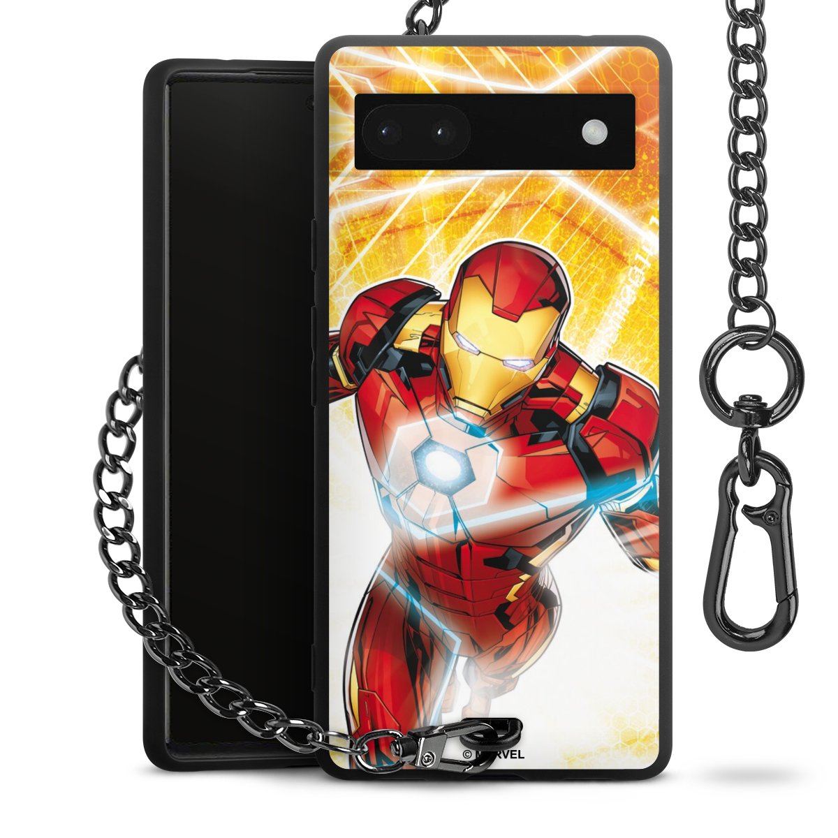 Die mattschwarze Silikon-Handyhülle besteht aus robustem TPU (thermoplastisches Polyurethan). Sie ist flexibel und schützt Dein Smartphone vor Stößen und Kratzern. Die Kette sowie der Karabinerhaken sind aus Metall in Gunmetal-Optik gefertigt. Für dieses Produkt kommen ausschließlich TÜV-geprüfte Materialien zum Einsatz.