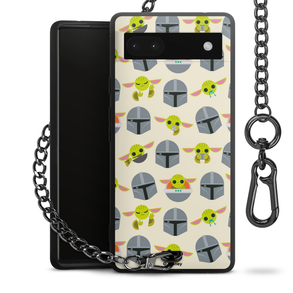 Die mattschwarze Silikon-Handyhülle besteht aus robustem TPU (thermoplastisches Polyurethan). Sie ist flexibel und schützt Dein Smartphone vor Stößen und Kratzern. Die Kette sowie der Karabinerhaken sind aus Metall in Gunmetal-Optik gefertigt. Für dieses Produkt kommen ausschließlich TÜV-geprüfte Materialien zum Einsatz.