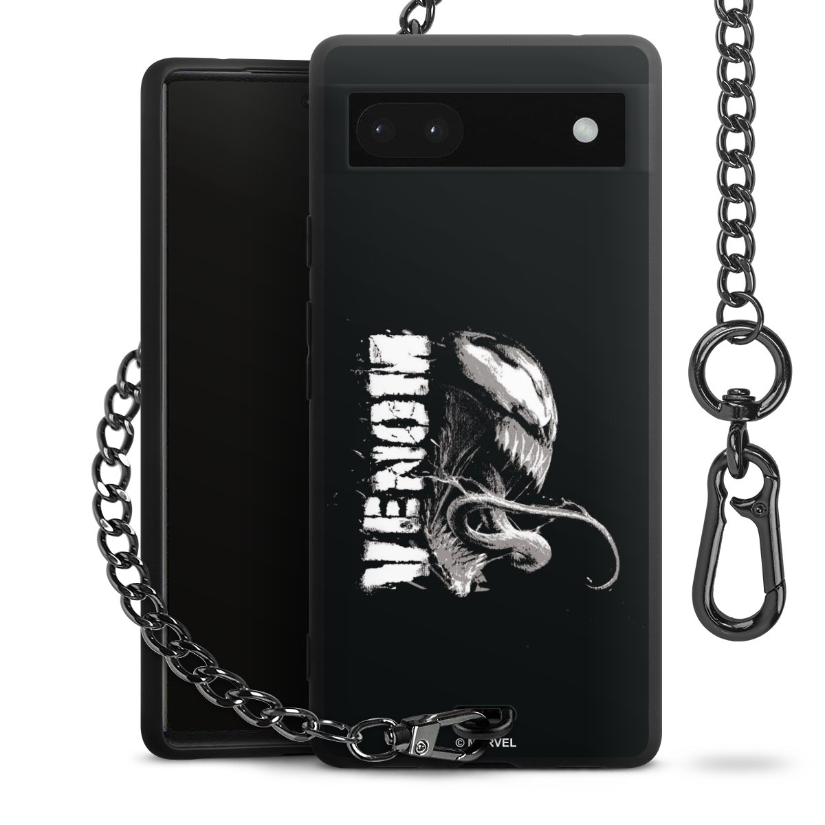 Die mattschwarze Silikon-Handyhülle besteht aus robustem TPU (thermoplastisches Polyurethan). Sie ist flexibel und schützt Dein Smartphone vor Stößen und Kratzern. Die Kette sowie der Karabinerhaken sind aus Metall in Gunmetal-Optik gefertigt. Für dieses Produkt kommen ausschließlich TÜV-geprüfte Materialien zum Einsatz.