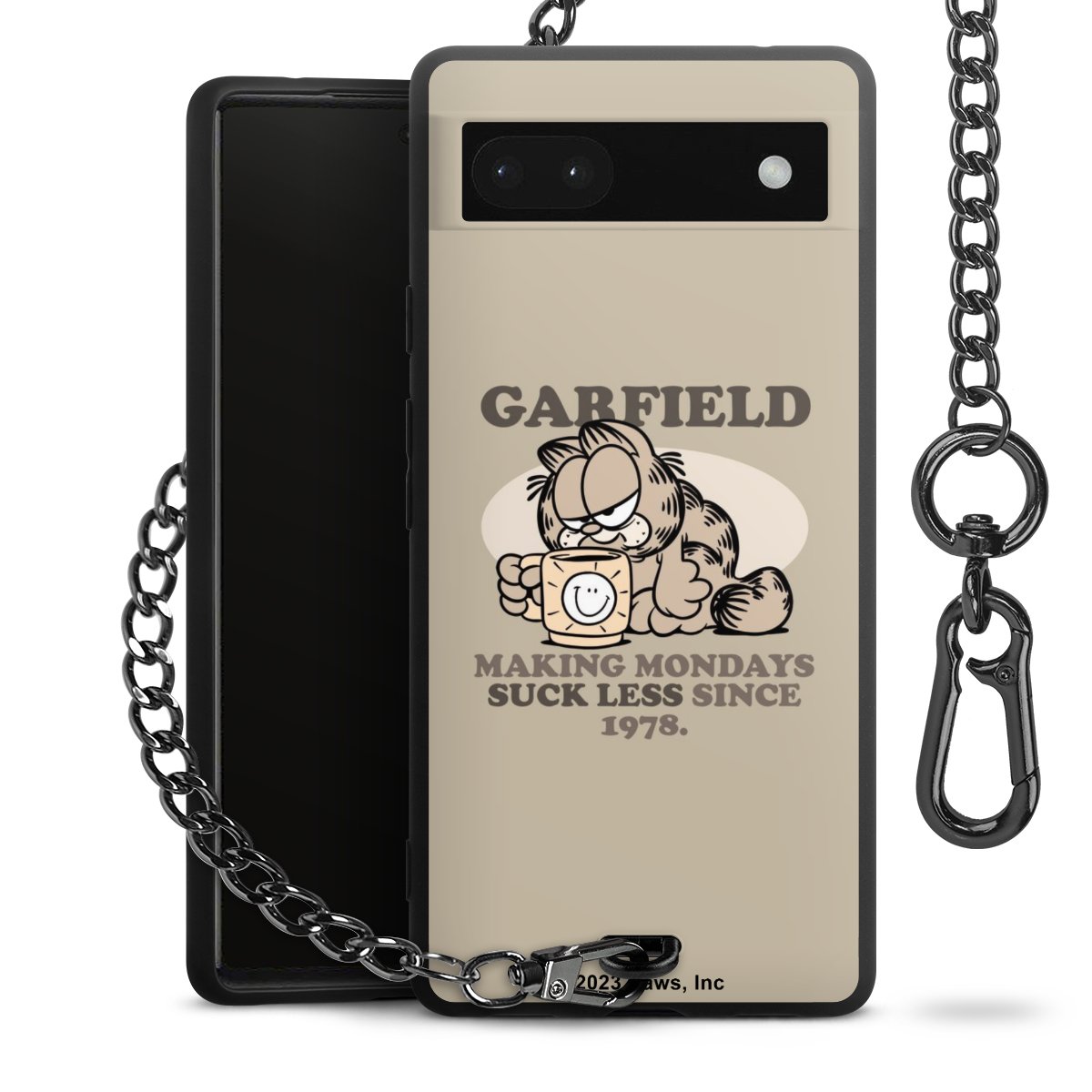 Die mattschwarze Silikon-Handyhülle besteht aus robustem TPU (thermoplastisches Polyurethan). Sie ist flexibel und schützt Dein Smartphone vor Stößen und Kratzern. Die Kette sowie der Karabinerhaken sind aus Metall in Gunmetal-Optik gefertigt. Für dieses Produkt kommen ausschließlich TÜV-geprüfte Materialien zum Einsatz.