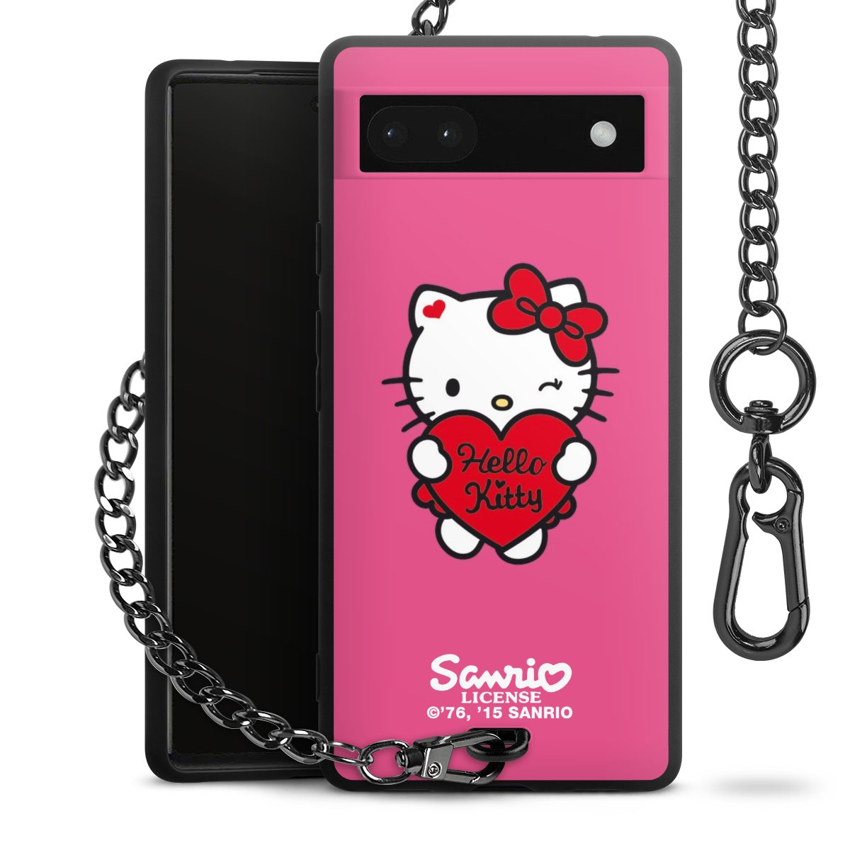 Die mattschwarze Silikon-Handyhülle besteht aus robustem TPU (thermoplastisches Polyurethan). Sie ist flexibel und schützt Dein Smartphone vor Stößen und Kratzern. Die Kette sowie der Karabinerhaken sind aus Metall in Gunmetal-Optik gefertigt. Für dieses Produkt kommen ausschließlich TÜV-geprüfte Materialien zum Einsatz.