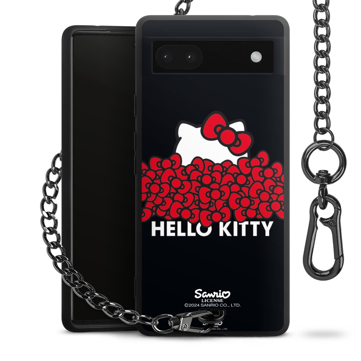 Die mattschwarze Silikon-Handyhülle besteht aus robustem TPU (thermoplastisches Polyurethan). Sie ist flexibel und schützt Dein Smartphone vor Stößen und Kratzern. Die Kette sowie der Karabinerhaken sind aus Metall in Gunmetal-Optik gefertigt. Für dieses Produkt kommen ausschließlich TÜV-geprüfte Materialien zum Einsatz.