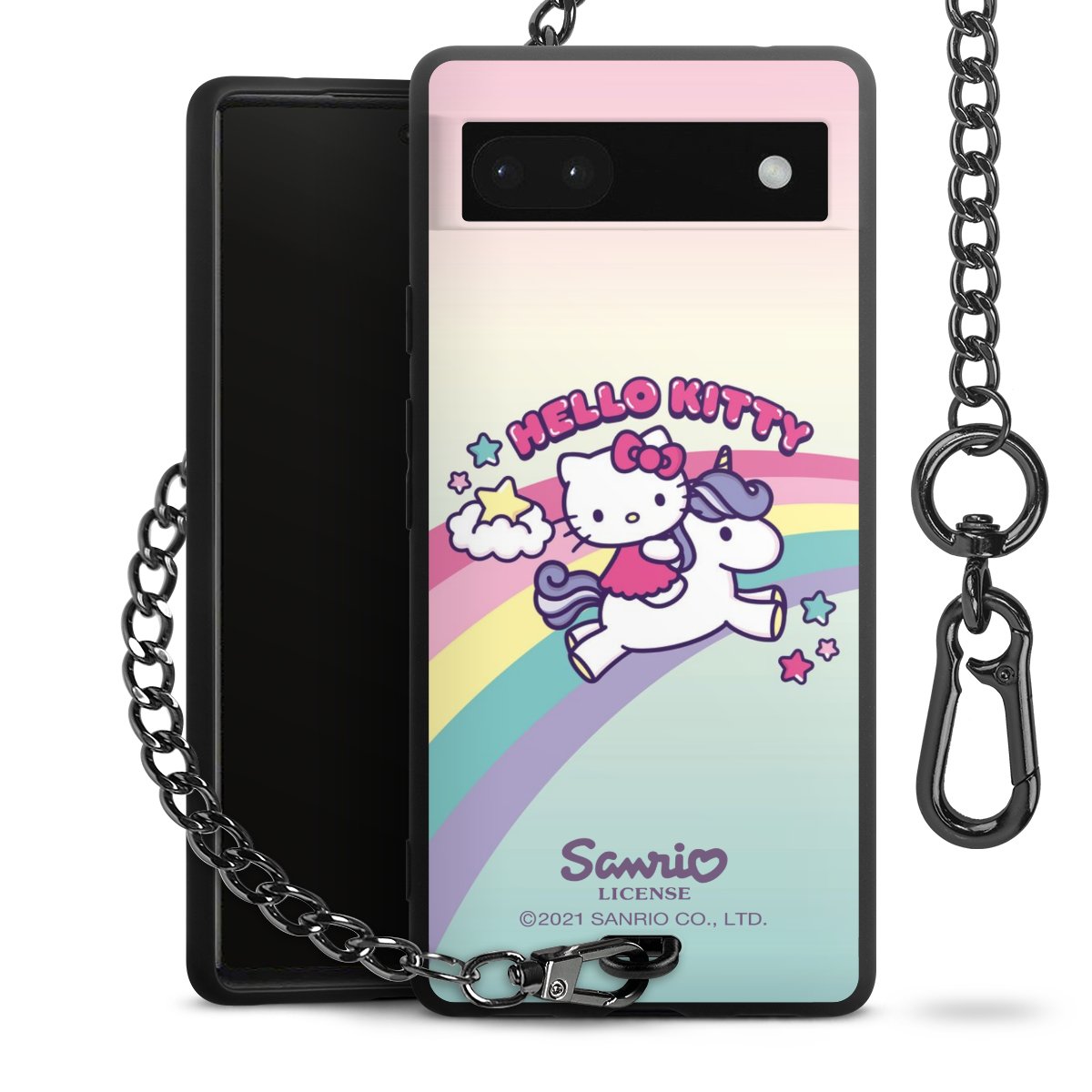 Die mattschwarze Silikon-Handyhülle besteht aus robustem TPU (thermoplastisches Polyurethan). Sie ist flexibel und schützt Dein Smartphone vor Stößen und Kratzern. Die Kette sowie der Karabinerhaken sind aus Metall in Gunmetal-Optik gefertigt. Für dieses Produkt kommen ausschließlich TÜV-geprüfte Materialien zum Einsatz.