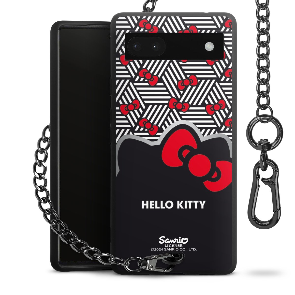 Die mattschwarze Silikon-Handyhülle besteht aus robustem TPU (thermoplastisches Polyurethan). Sie ist flexibel und schützt Dein Smartphone vor Stößen und Kratzern. Die Kette sowie der Karabinerhaken sind aus Metall in Gunmetal-Optik gefertigt. Für dieses Produkt kommen ausschließlich TÜV-geprüfte Materialien zum Einsatz.