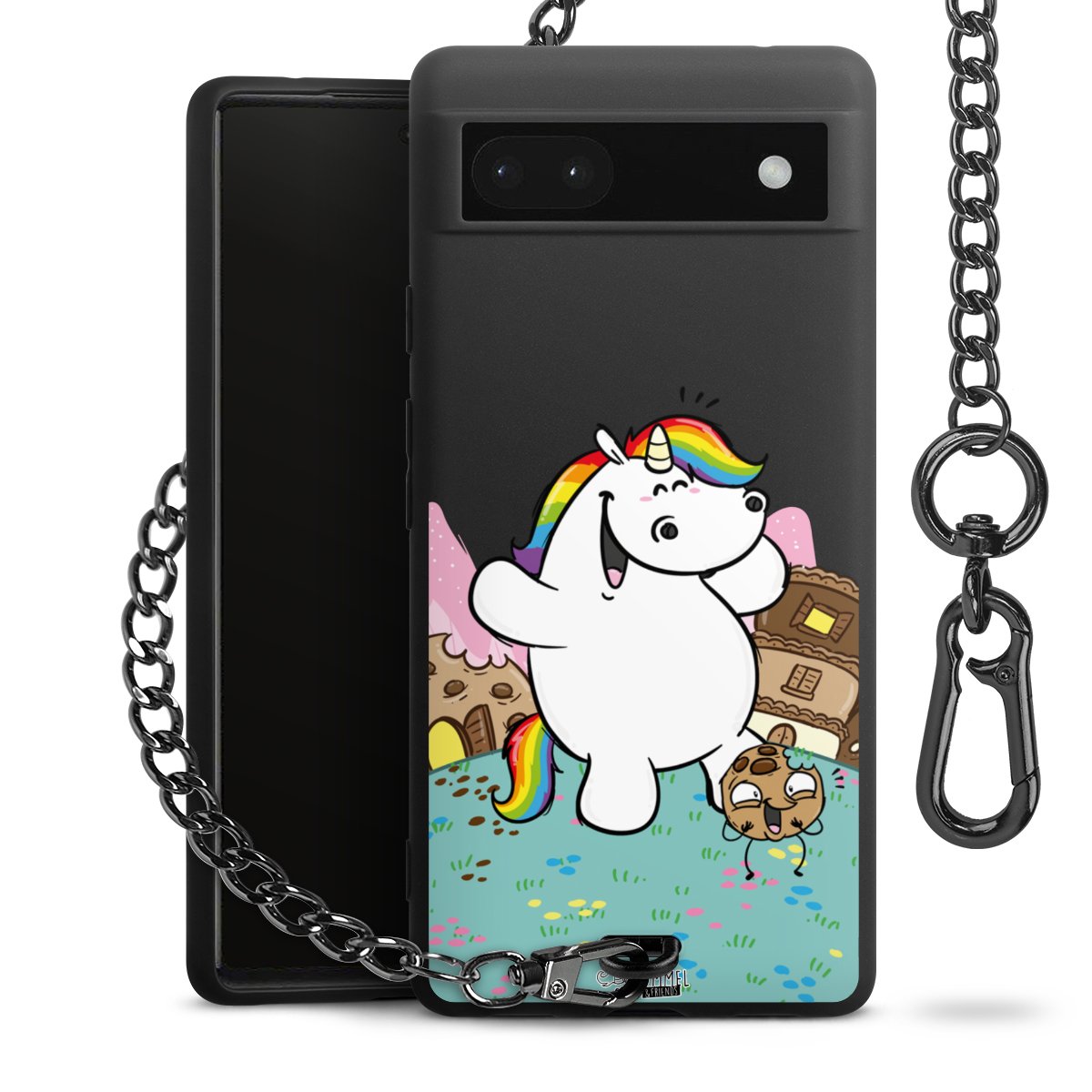 Die mattschwarze Silikon-Handyhülle besteht aus robustem TPU (thermoplastisches Polyurethan). Sie ist flexibel und schützt Dein Smartphone vor Stößen und Kratzern. Die Kette sowie der Karabinerhaken sind aus Metall in Gunmetal-Optik gefertigt. Für dieses Produkt kommen ausschließlich TÜV-geprüfte Materialien zum Einsatz.