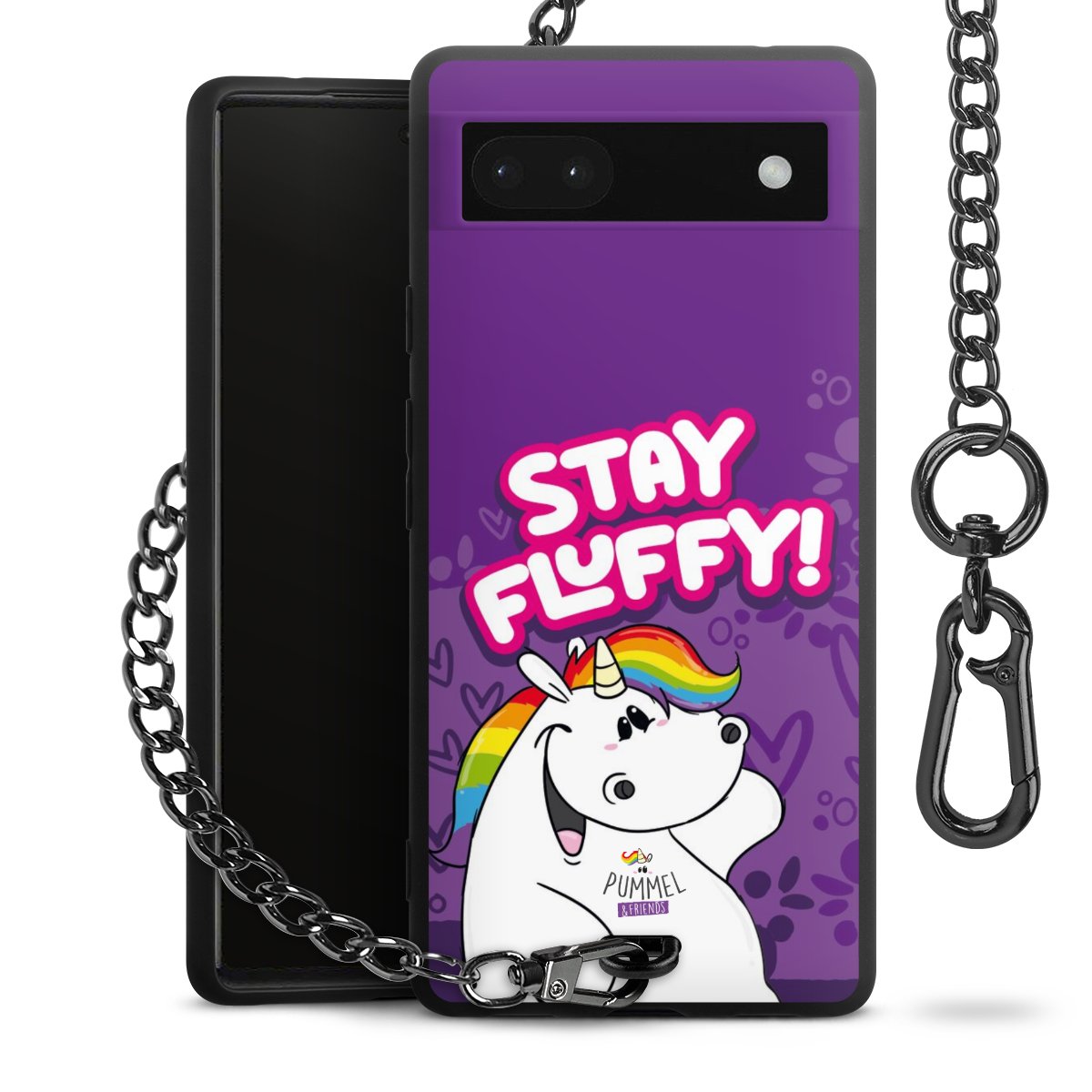 Die mattschwarze Silikon-Handyhülle besteht aus robustem TPU (thermoplastisches Polyurethan). Sie ist flexibel und schützt Dein Smartphone vor Stößen und Kratzern. Die Kette sowie der Karabinerhaken sind aus Metall in Gunmetal-Optik gefertigt. Für dieses Produkt kommen ausschließlich TÜV-geprüfte Materialien zum Einsatz.