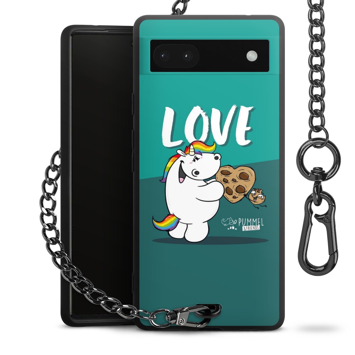 Die mattschwarze Silikon-Handyhülle besteht aus robustem TPU (thermoplastisches Polyurethan). Sie ist flexibel und schützt Dein Smartphone vor Stößen und Kratzern. Die Kette sowie der Karabinerhaken sind aus Metall in Gunmetal-Optik gefertigt. Für dieses Produkt kommen ausschließlich TÜV-geprüfte Materialien zum Einsatz.