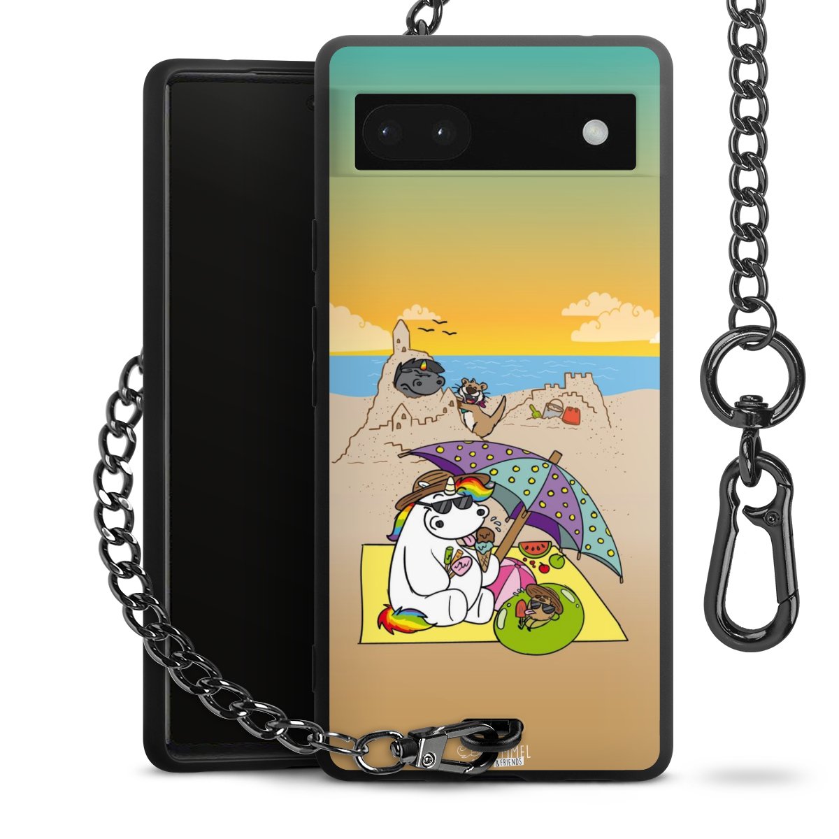 Die mattschwarze Silikon-Handyhülle besteht aus robustem TPU (thermoplastisches Polyurethan). Sie ist flexibel und schützt Dein Smartphone vor Stößen und Kratzern. Die Kette sowie der Karabinerhaken sind aus Metall in Gunmetal-Optik gefertigt. Für dieses Produkt kommen ausschließlich TÜV-geprüfte Materialien zum Einsatz.