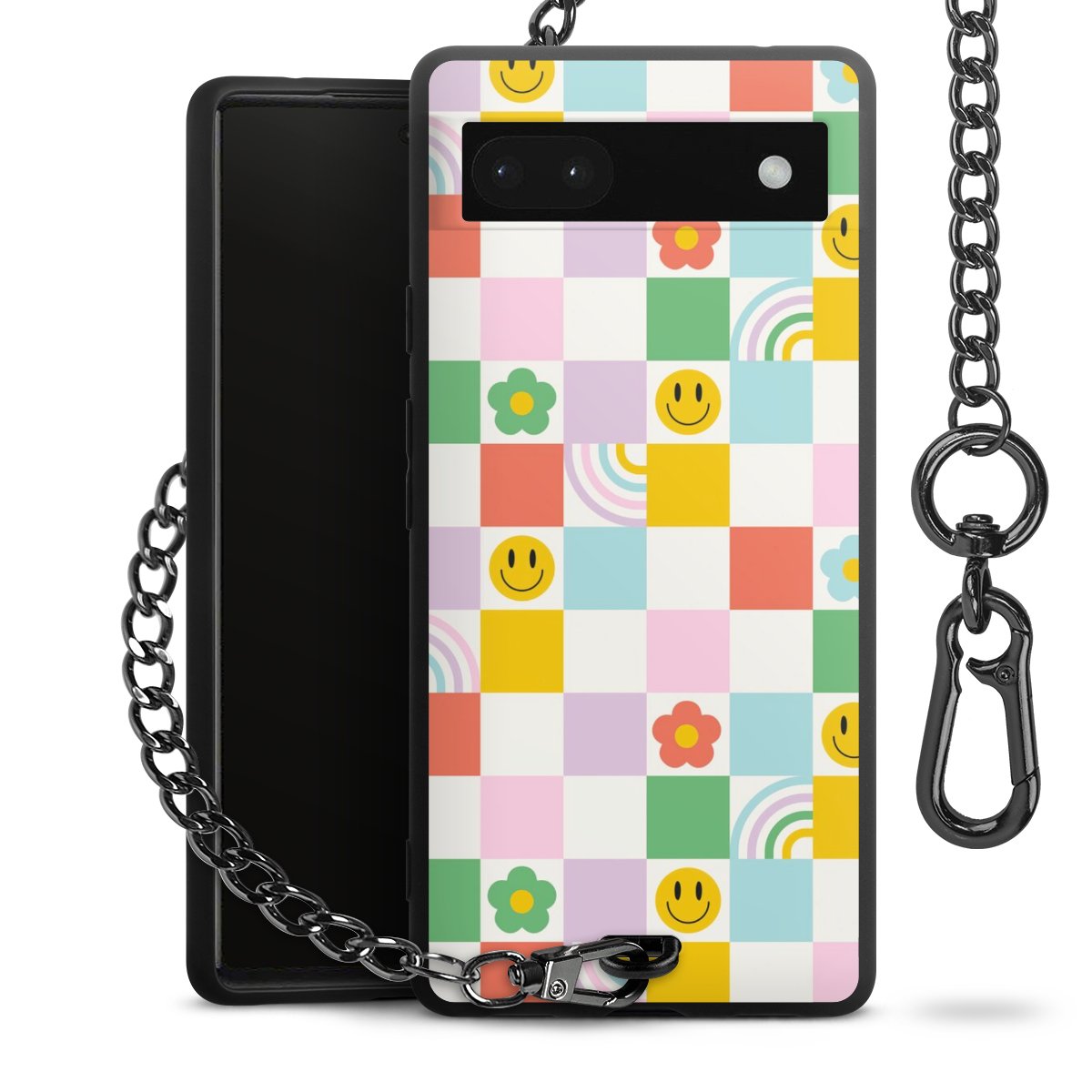 Die mattschwarze Silikon-Handyhülle besteht aus robustem TPU (thermoplastisches Polyurethan). Sie ist flexibel und schützt Dein Smartphone vor Stößen und Kratzern. Die Kette sowie der Karabinerhaken sind aus Metall in Gunmetal-Optik gefertigt. Für dieses Produkt kommen ausschließlich TÜV-geprüfte Materialien zum Einsatz.