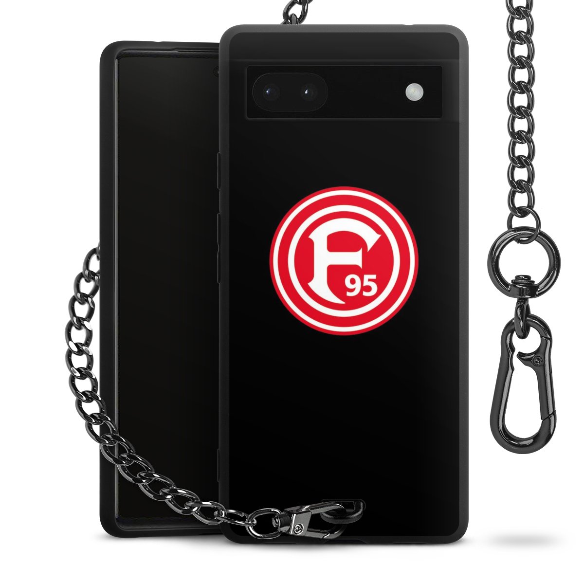 Die mattschwarze Silikon-Handyhülle besteht aus robustem TPU (thermoplastisches Polyurethan). Sie ist flexibel und schützt Dein Smartphone vor Stößen und Kratzern. Die Kette sowie der Karabinerhaken sind aus Metall in Gunmetal-Optik gefertigt. Für dieses Produkt kommen ausschließlich TÜV-geprüfte Materialien zum Einsatz.
