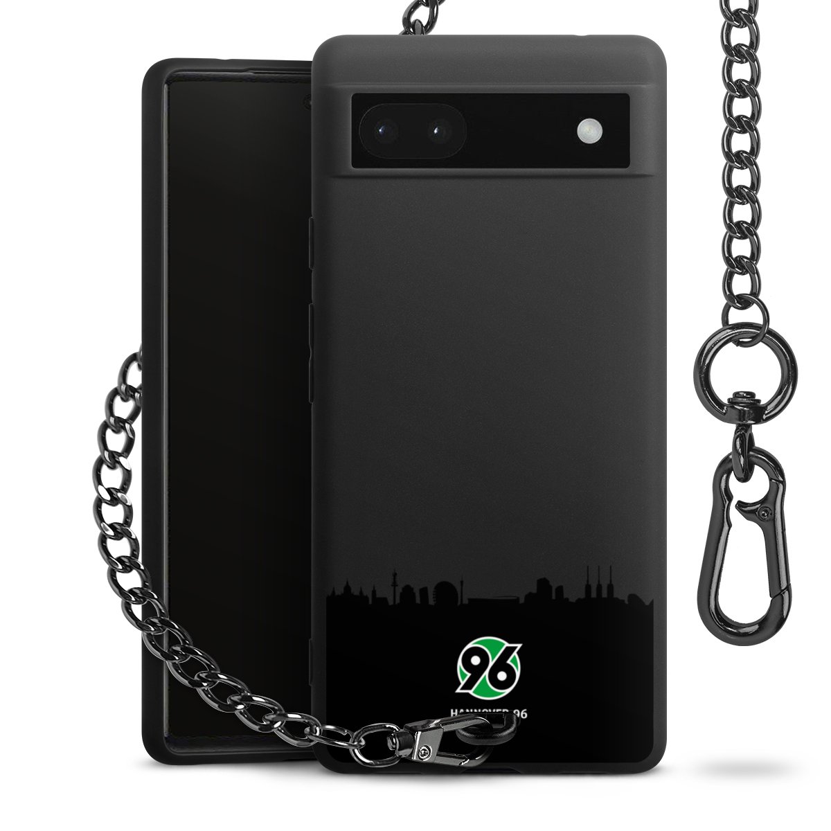 Die mattschwarze Silikon-Handyhülle besteht aus robustem TPU (thermoplastisches Polyurethan). Sie ist flexibel und schützt Dein Smartphone vor Stößen und Kratzern. Die Kette sowie der Karabinerhaken sind aus Metall in Gunmetal-Optik gefertigt. Für dieses Produkt kommen ausschließlich TÜV-geprüfte Materialien zum Einsatz.