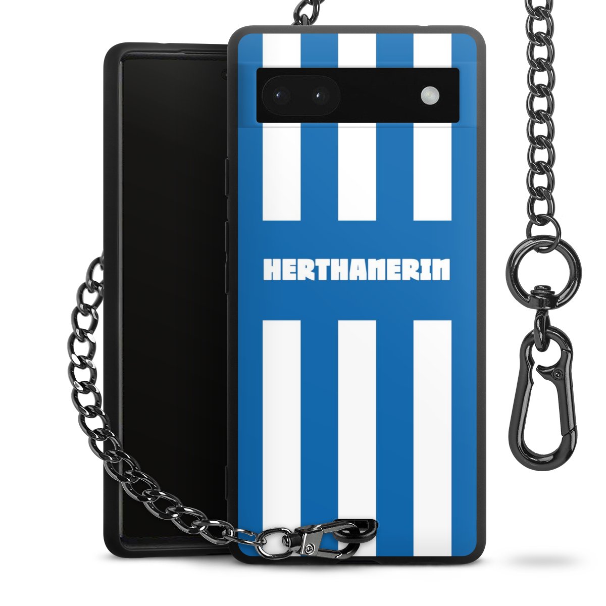 Die mattschwarze Silikon-Handyhülle besteht aus robustem TPU (thermoplastisches Polyurethan). Sie ist flexibel und schützt Dein Smartphone vor Stößen und Kratzern. Die Kette sowie der Karabinerhaken sind aus Metall in Gunmetal-Optik gefertigt. Für dieses Produkt kommen ausschließlich TÜV-geprüfte Materialien zum Einsatz.