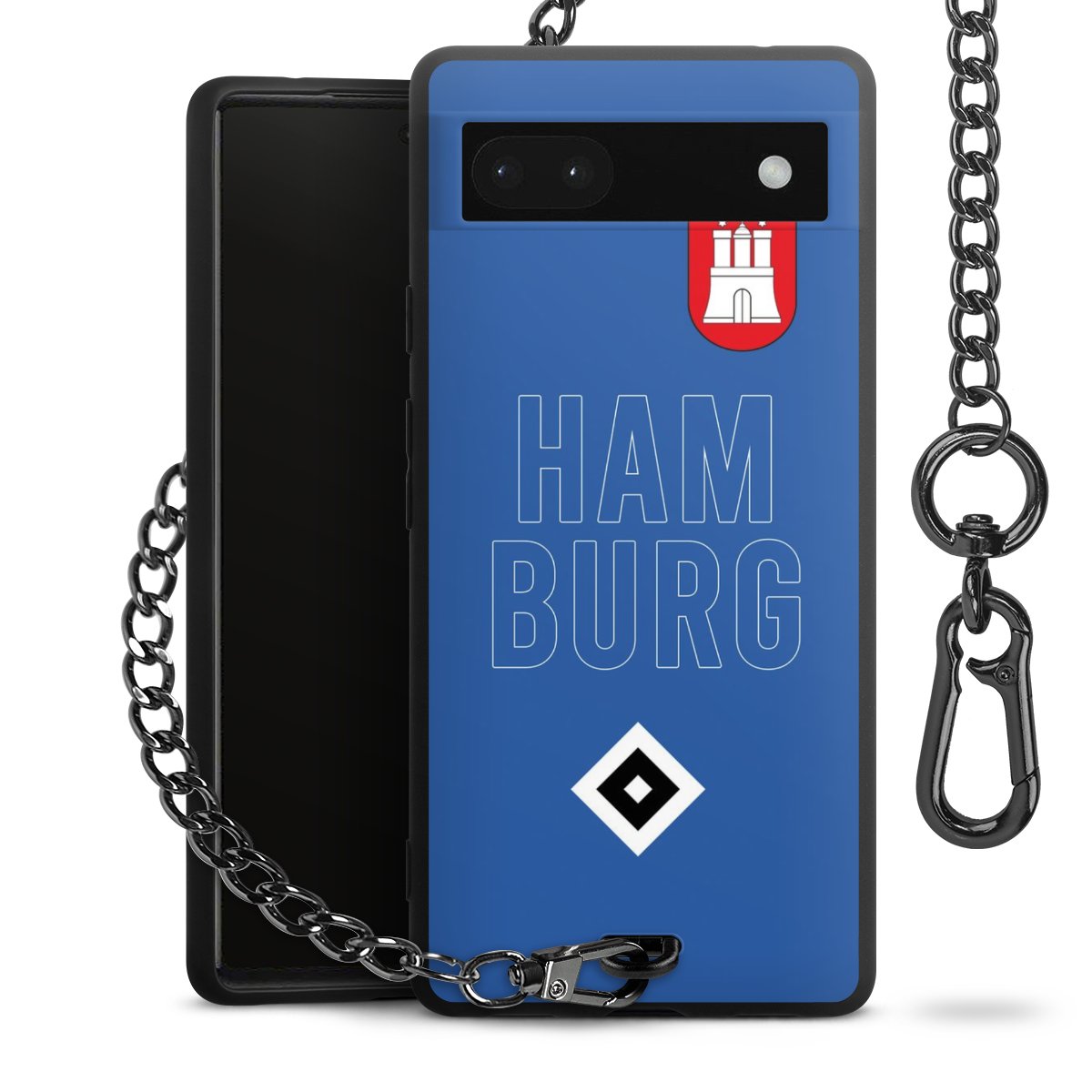 Die mattschwarze Silikon-Handyhülle besteht aus robustem TPU (thermoplastisches Polyurethan). Sie ist flexibel und schützt Dein Smartphone vor Stößen und Kratzern. Die Kette sowie der Karabinerhaken sind aus Metall in Gunmetal-Optik gefertigt. Für dieses Produkt kommen ausschließlich TÜV-geprüfte Materialien zum Einsatz.