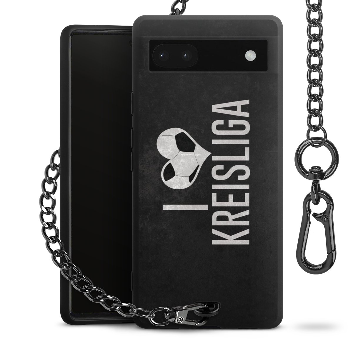 Die mattschwarze Silikon-Handyhülle besteht aus robustem TPU (thermoplastisches Polyurethan). Sie ist flexibel und schützt Dein Smartphone vor Stößen und Kratzern. Die Kette sowie der Karabinerhaken sind aus Metall in Gunmetal-Optik gefertigt. Für dieses Produkt kommen ausschließlich TÜV-geprüfte Materialien zum Einsatz.