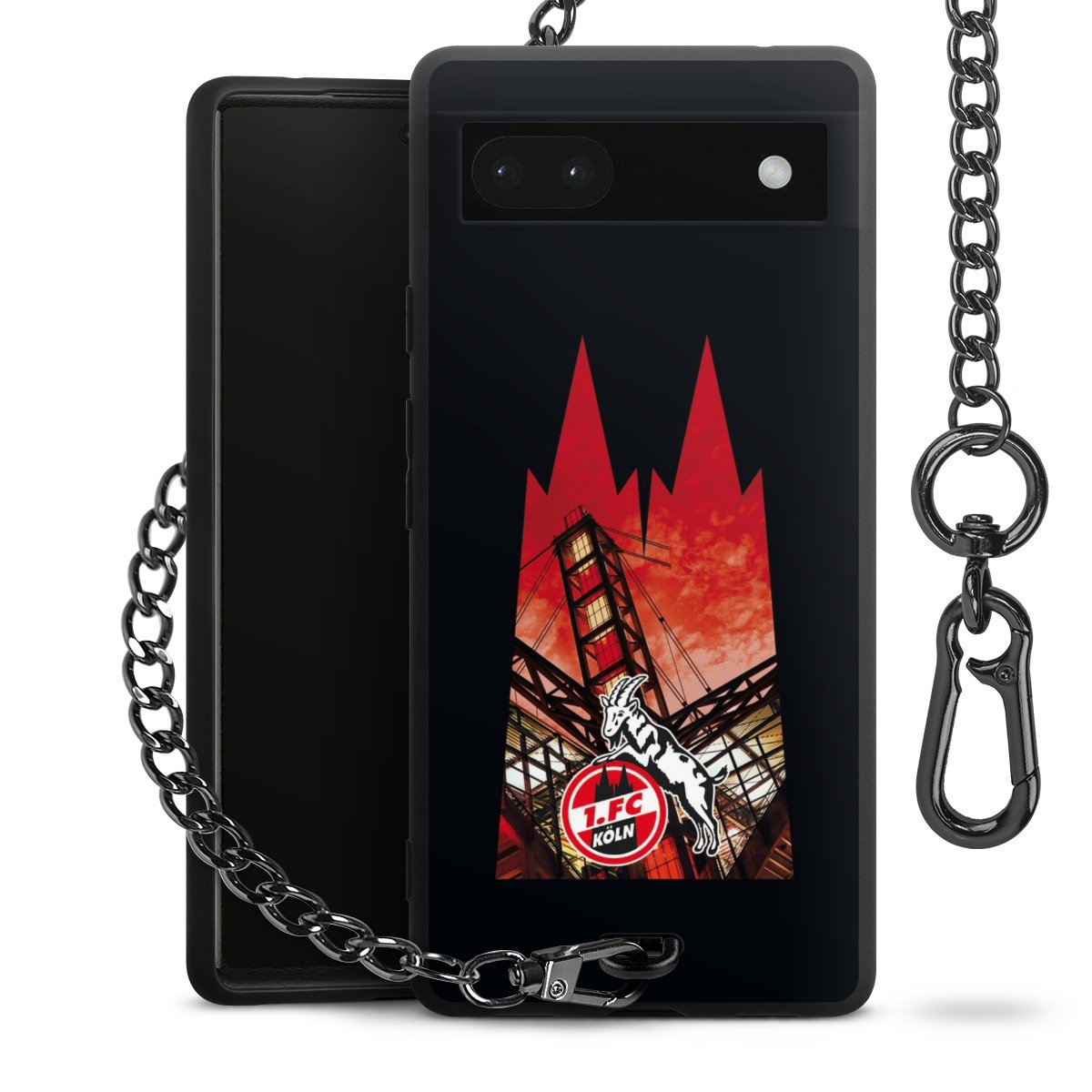 Die mattschwarze Silikon-Handyhülle besteht aus robustem TPU (thermoplastisches Polyurethan). Sie ist flexibel und schützt Dein Smartphone vor Stößen und Kratzern. Die Kette sowie der Karabinerhaken sind aus Metall in Gunmetal-Optik gefertigt. Für dieses Produkt kommen ausschließlich TÜV-geprüfte Materialien zum Einsatz.