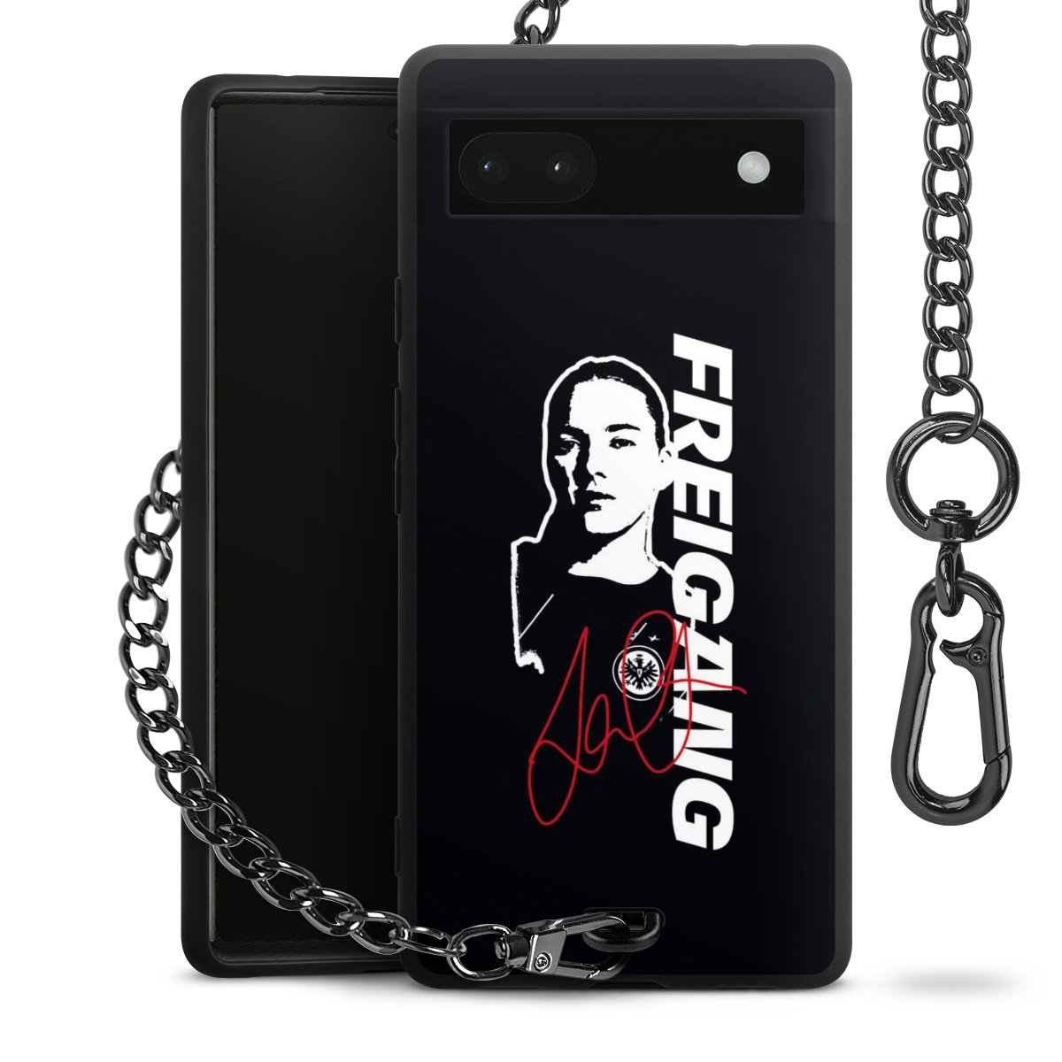 • Mattschwarze Handyhülle mit Metallkette