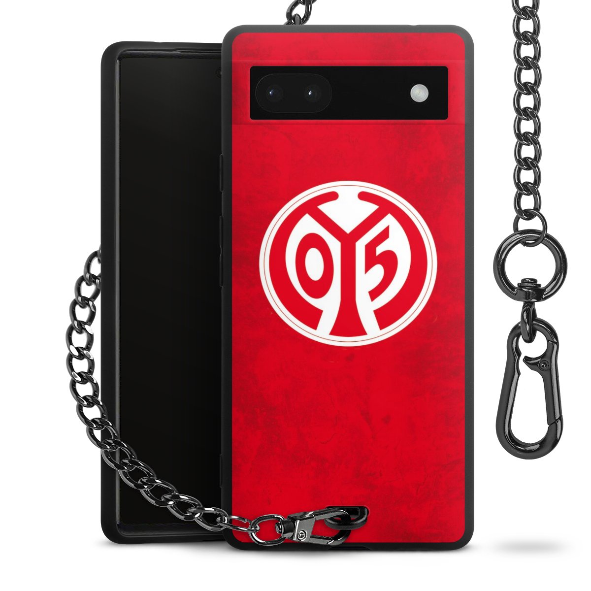 Die mattschwarze Silikon-Handyhülle besteht aus robustem TPU (thermoplastisches Polyurethan). Sie ist flexibel und schützt Dein Smartphone vor Stößen und Kratzern. Die Kette sowie der Karabinerhaken sind aus Metall in Gunmetal-Optik gefertigt. Für dieses Produkt kommen ausschließlich TÜV-geprüfte Materialien zum Einsatz.