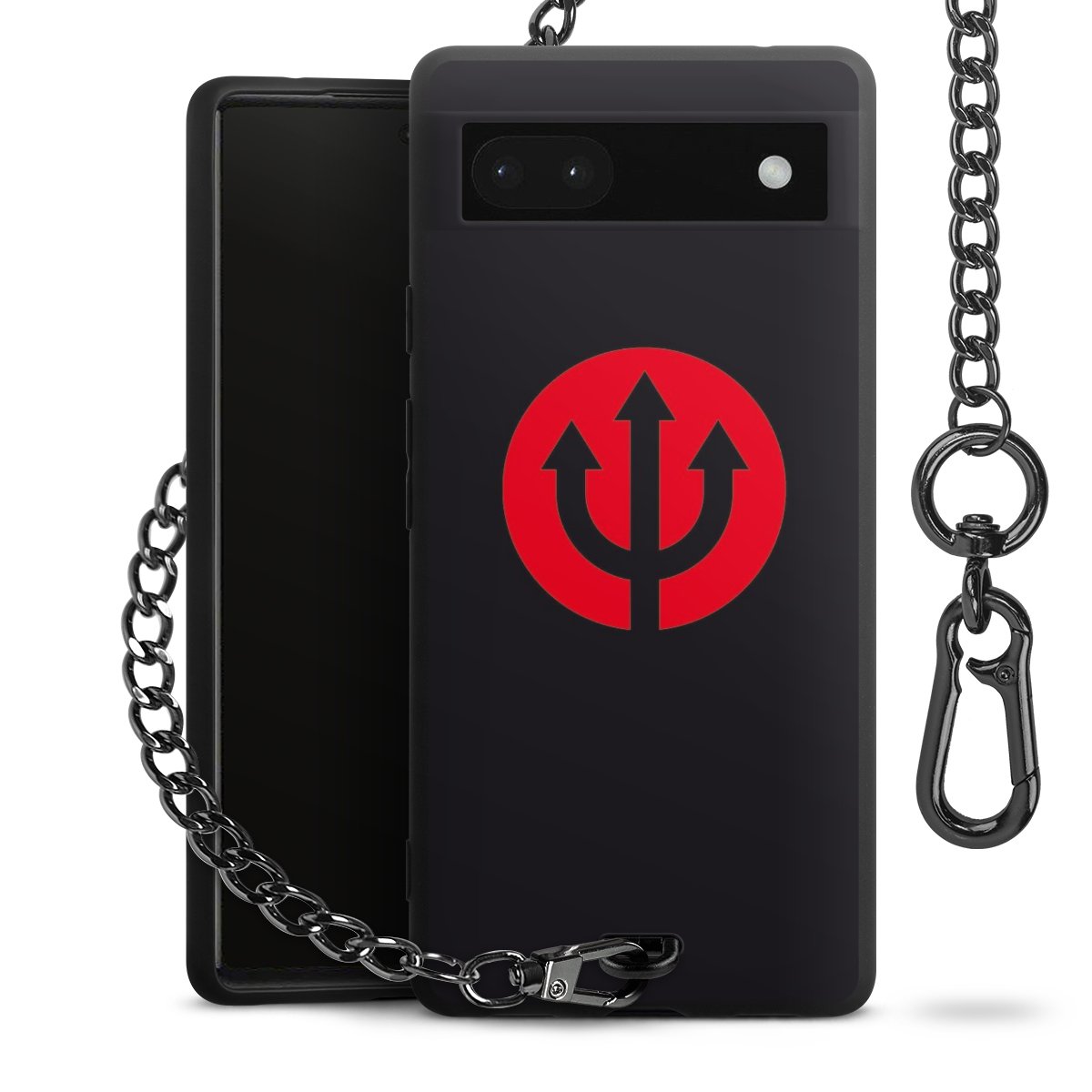 Die mattschwarze Silikon-Handyhülle besteht aus robustem TPU (thermoplastisches Polyurethan). Sie ist flexibel und schützt Dein Smartphone vor Stößen und Kratzern. Die Kette sowie der Karabinerhaken sind aus Metall in Gunmetal-Optik gefertigt. Für dieses Produkt kommen ausschließlich TÜV-geprüfte Materialien zum Einsatz.