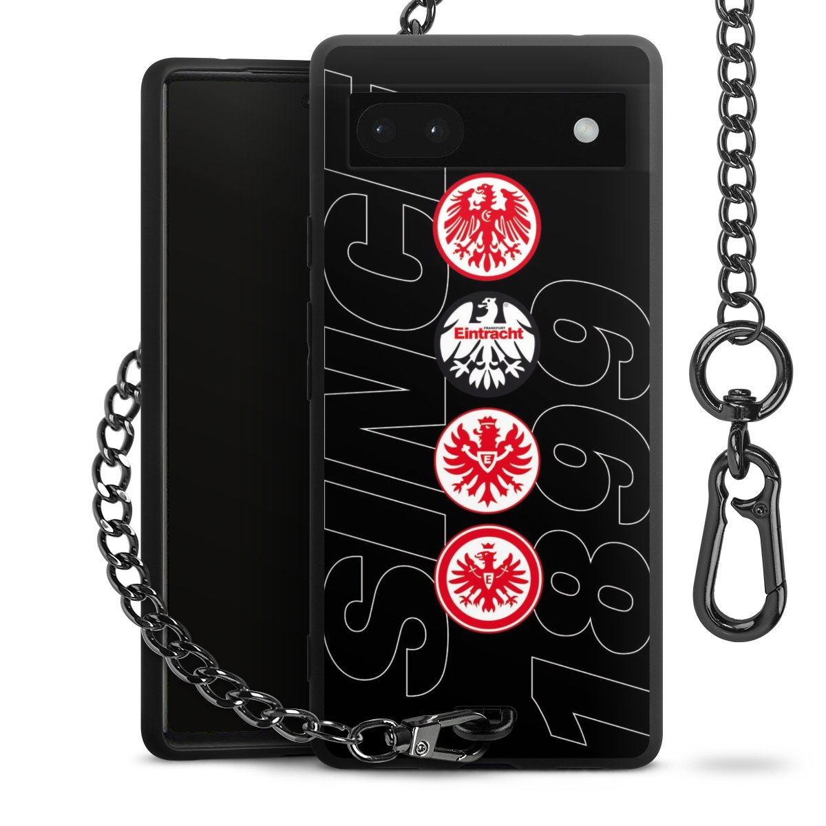Die mattschwarze Silikon-Handyhülle besteht aus robustem TPU (thermoplastisches Polyurethan). Sie ist flexibel und schützt Dein Smartphone vor Stößen und Kratzern. Die Kette sowie der Karabinerhaken sind aus Metall in Gunmetal-Optik gefertigt. Für dieses Produkt kommen ausschließlich TÜV-geprüfte Materialien zum Einsatz.