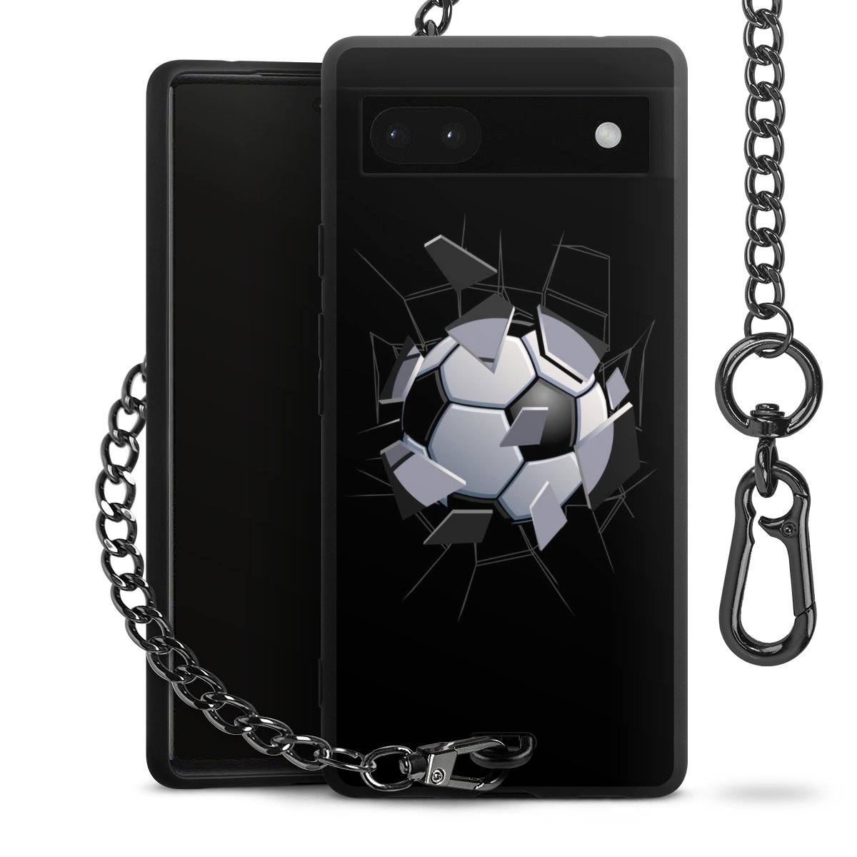 - Mattschwarze Handyhülle mit Metallkette