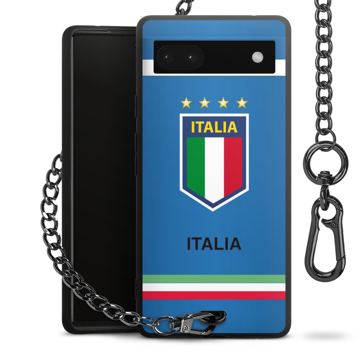 - Mattschwarze Handyhülle mit Metallkette