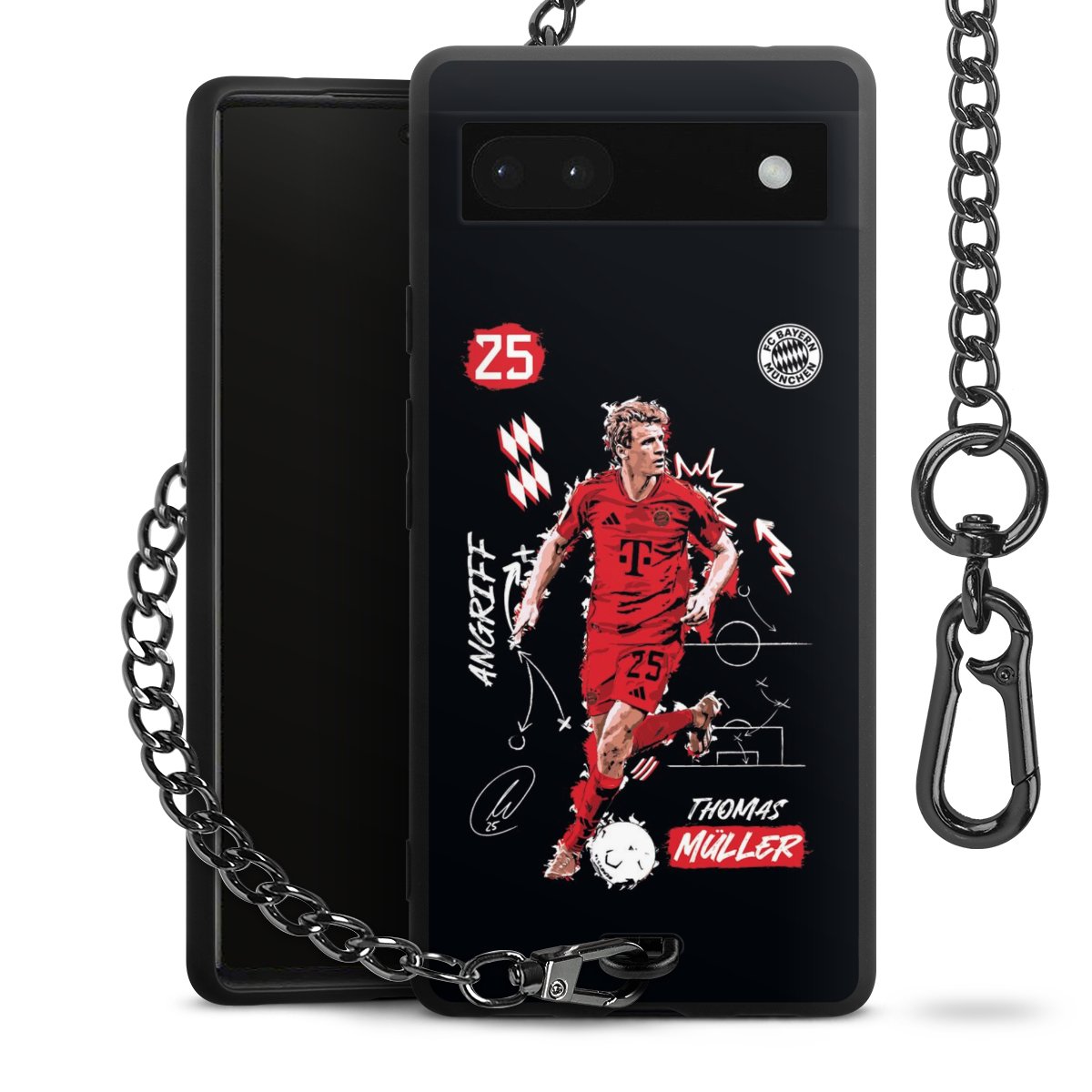 • Mattschwarze Handyhülle mit Metallkette