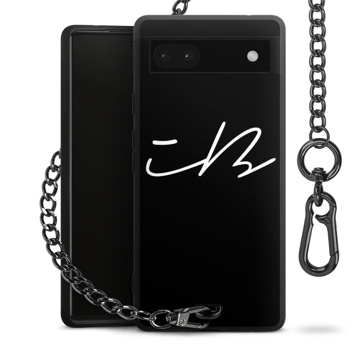 • Mattschwarze Handyhülle mit Metallkette