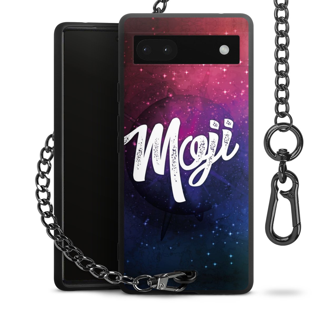 • Mattschwarze Handyhülle mit Metallkette