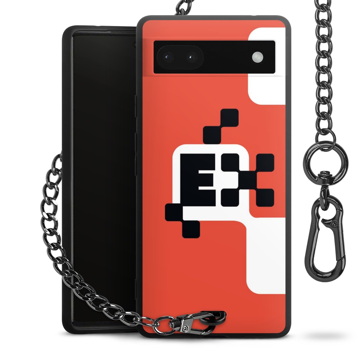 Die mattschwarze Silikon-Handyhülle besteht aus robustem TPU (thermoplastisches Polyurethan). Sie ist flexibel und schützt Dein Smartphone vor Stößen und Kratzern. Die Kette sowie der Karabinerhaken sind aus Metall in Gunmetal-Optik gefertigt. Für dieses Produkt kommen ausschließlich TÜV-geprüfte Materialien zum Einsatz.