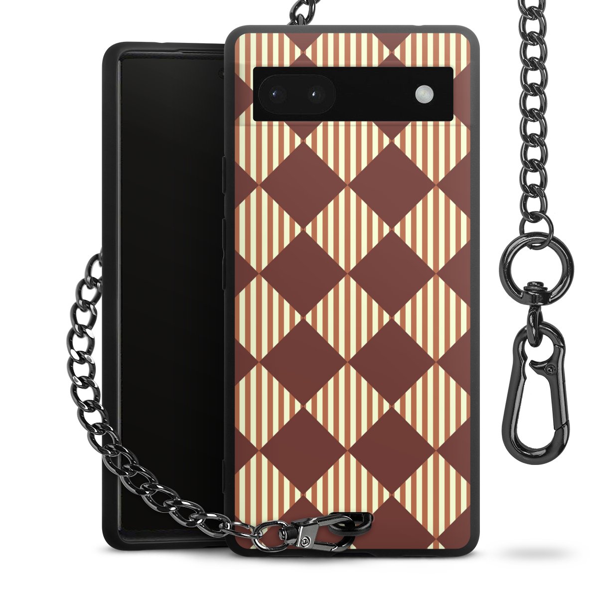 - Mattschwarze Handyhülle mit Metallkette