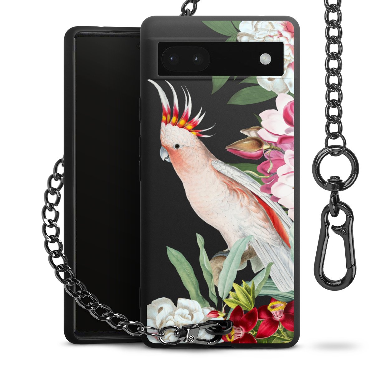 Die mattschwarze Silikon-Handyhülle besteht aus robustem TPU (thermoplastisches Polyurethan). Sie ist flexibel und schützt Dein Smartphone vor Stößen und Kratzern. Die Kette sowie der Karabinerhaken sind aus Metall in Gunmetal-Optik gefertigt. Für dieses Produkt kommen ausschließlich TÜV-geprüfte Materialien zum Einsatz.