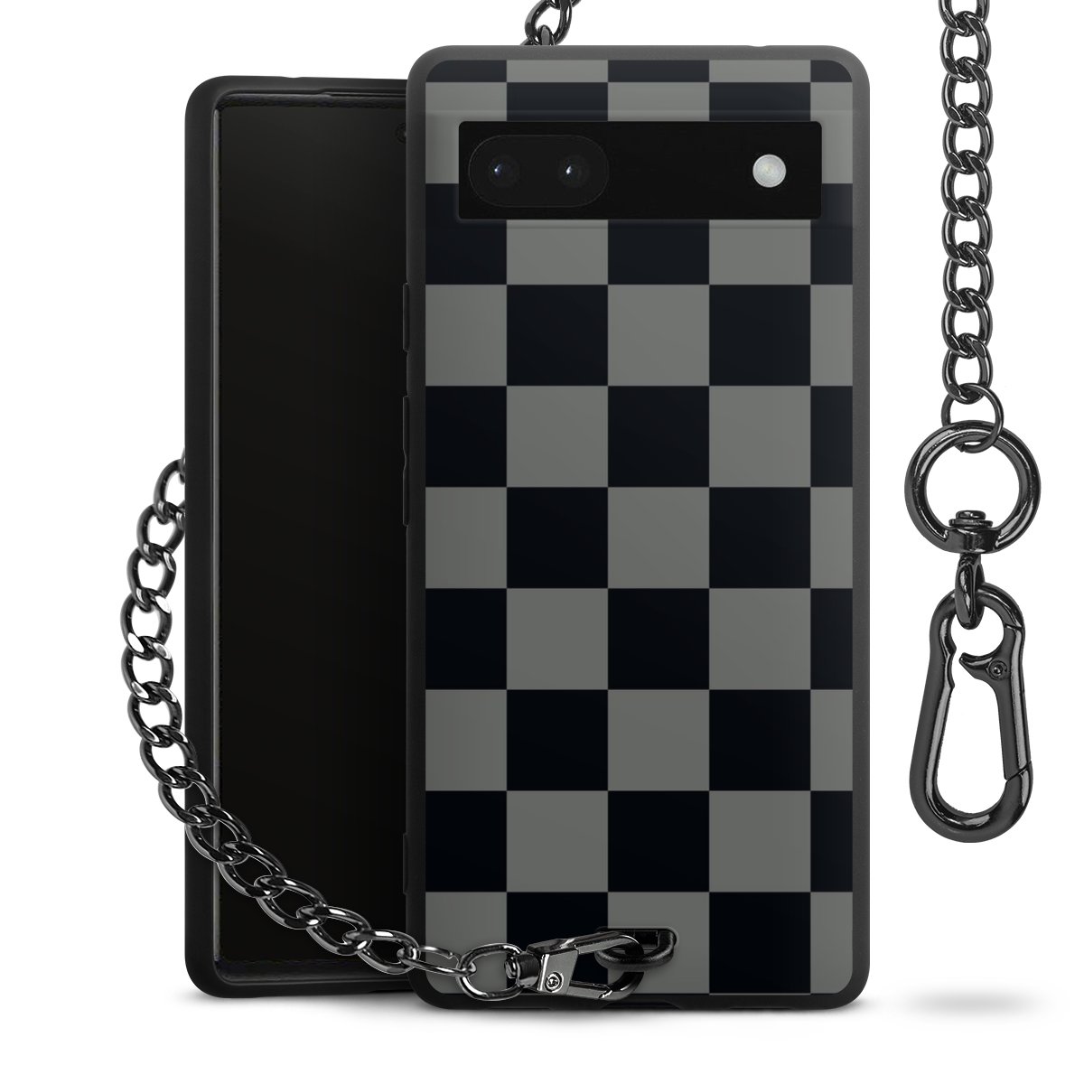 - Mattschwarze Handyhülle mit Metallkette