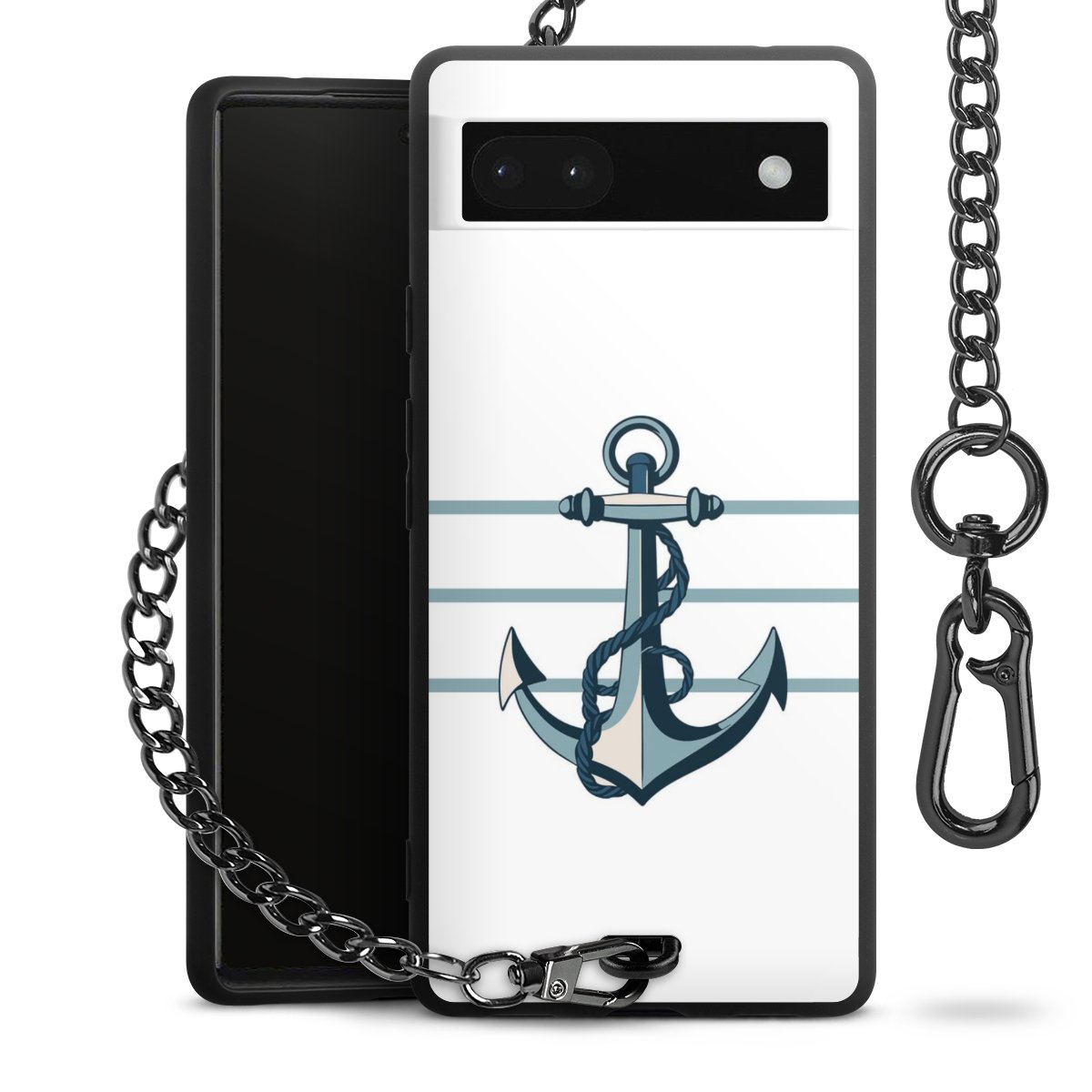 Die mattschwarze Silikon-Handyhülle besteht aus robustem TPU (thermoplastisches Polyurethan). Sie ist flexibel und schützt Dein Smartphone vor Stößen und Kratzern. Die Kette sowie der Karabinerhaken sind aus Metall in Gunmetal-Optik gefertigt. Für dieses Produkt kommen ausschließlich TÜV-geprüfte Materialien zum Einsatz.