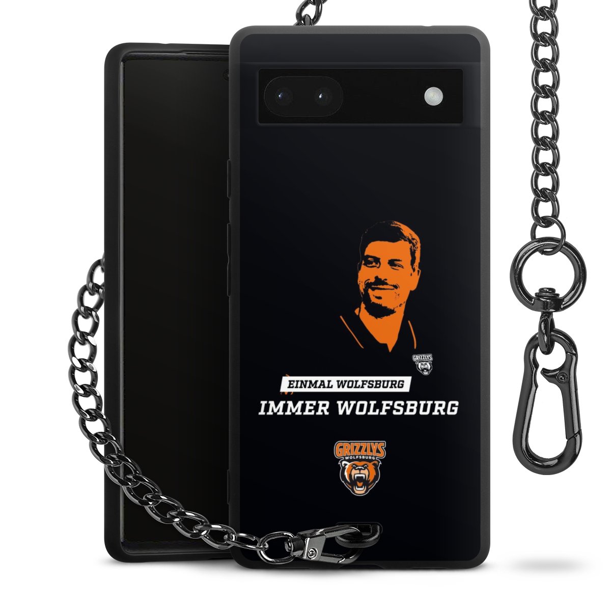 Die mattschwarze Silikon-Handyhülle besteht aus robustem TPU (thermoplastisches Polyurethan). Sie ist flexibel und schützt Dein Smartphone vor Stößen und Kratzern. Die Kette sowie der Karabinerhaken sind aus Metall in Gunmetal-Optik gefertigt. Für dieses Produkt kommen ausschließlich TÜV-geprüfte Materialien zum Einsatz.
