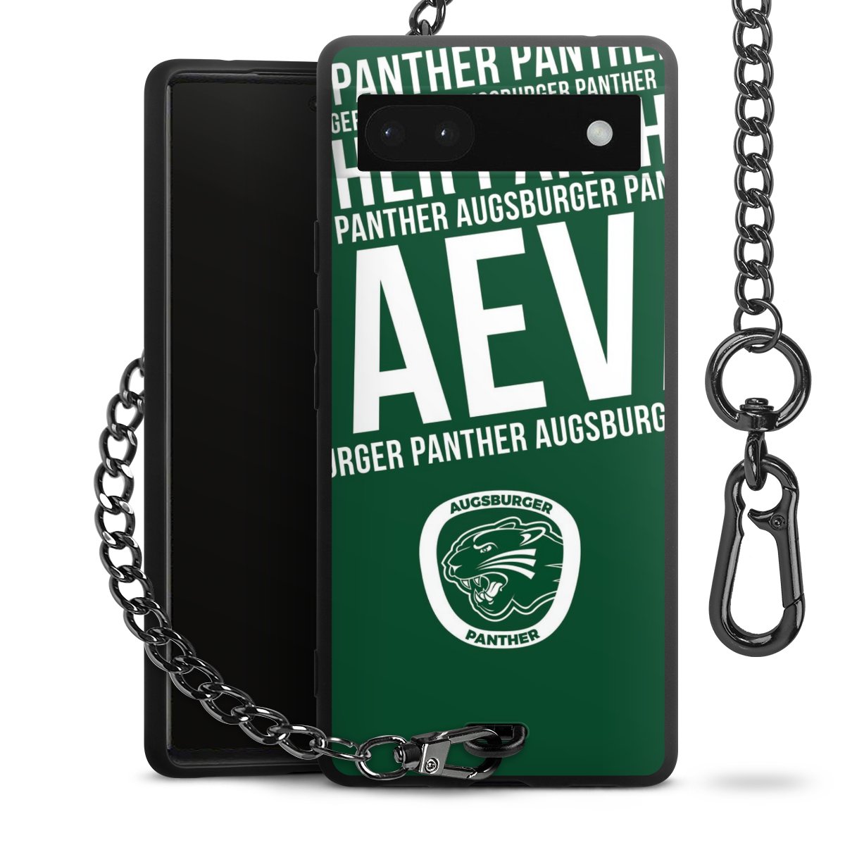 Die mattschwarze Silikon-Handyhülle besteht aus robustem TPU (thermoplastisches Polyurethan). Sie ist flexibel und schützt Dein Smartphone vor Stößen und Kratzern. Die Kette sowie der Karabinerhaken sind aus Metall in Gunmetal-Optik gefertigt. Für dieses Produkt kommen ausschließlich TÜV-geprüfte Materialien zum Einsatz.