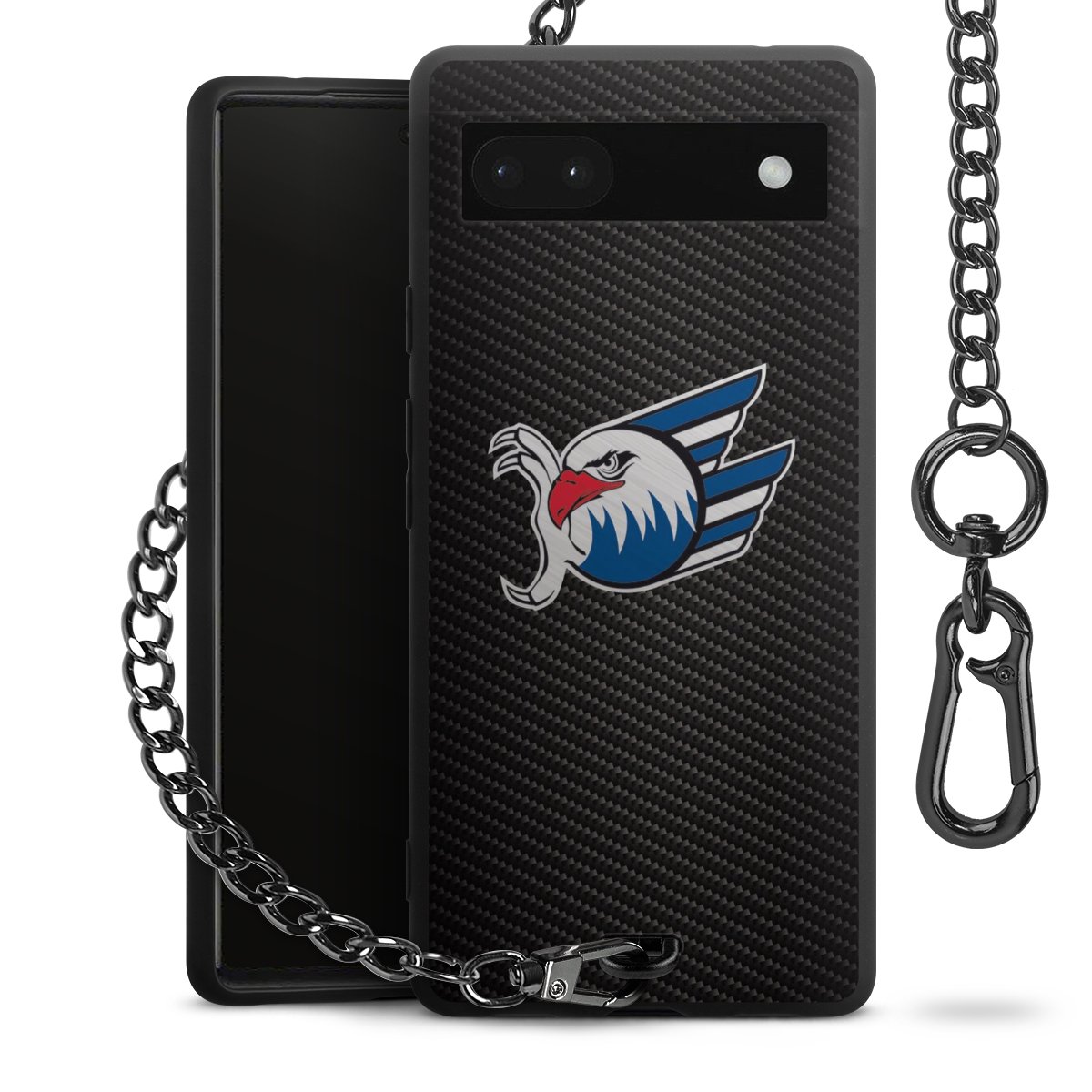 Die mattschwarze Silikon-Handyhülle besteht aus robustem TPU (thermoplastisches Polyurethan). Sie ist flexibel und schützt Dein Smartphone vor Stößen und Kratzern. Die Kette sowie der Karabinerhaken sind aus Metall in Gunmetal-Optik gefertigt. Für dieses Produkt kommen ausschließlich TÜV-geprüfte Materialien zum Einsatz.