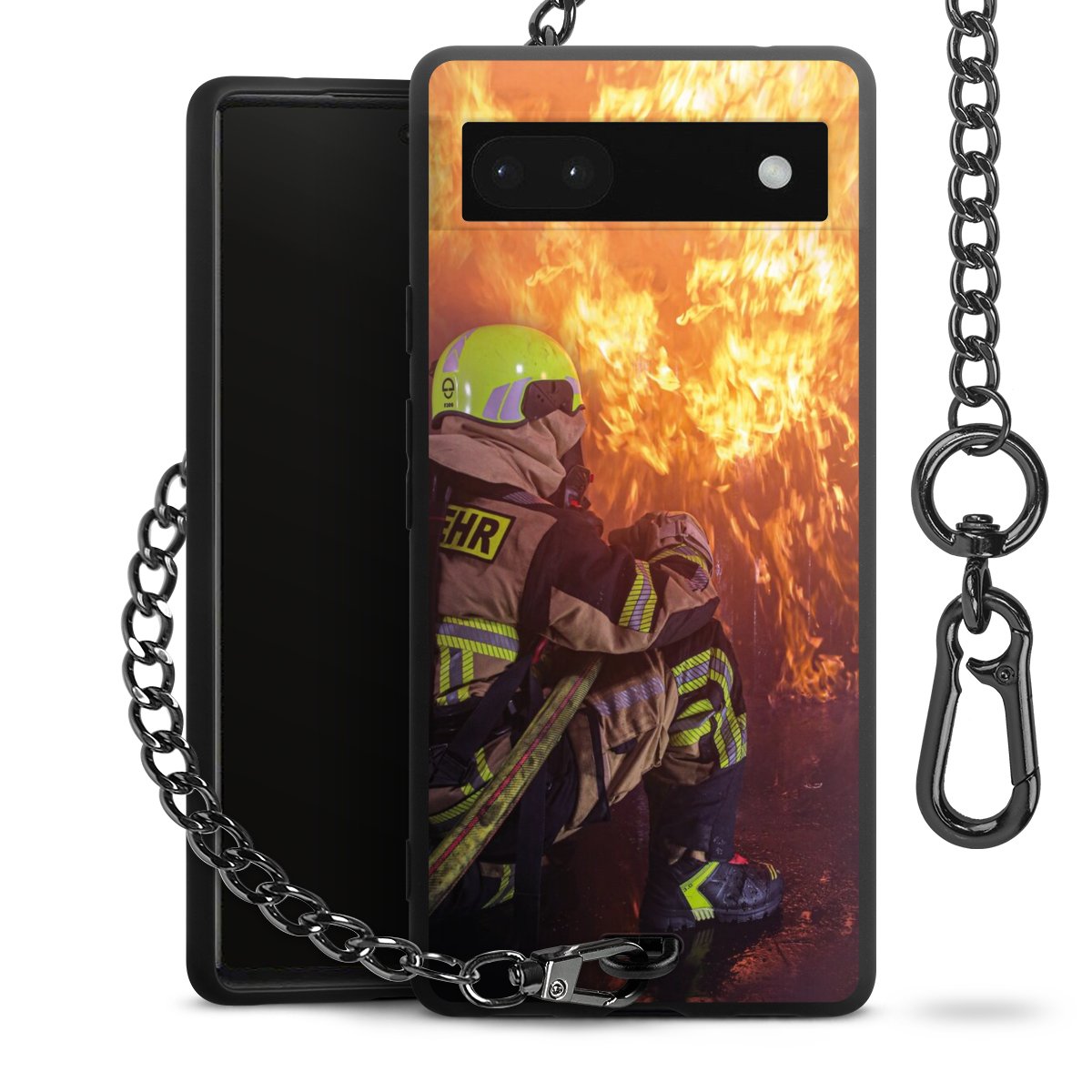 Die mattschwarze Silikon-Handyhülle besteht aus robustem TPU (thermoplastisches Polyurethan). Sie ist flexibel und schützt Dein Smartphone vor Stößen und Kratzern. Die Kette sowie der Karabinerhaken sind aus Metall in Gunmetal-Optik gefertigt. Für dieses Produkt kommen ausschließlich TÜV-geprüfte Materialien zum Einsatz.