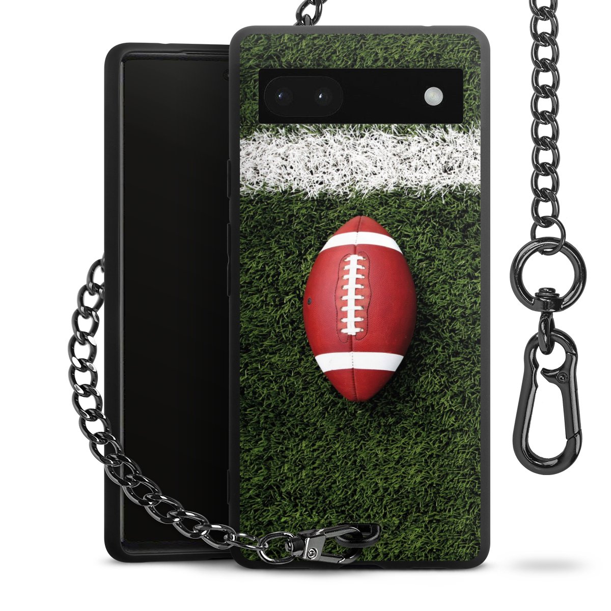 Die mattschwarze Silikon-Handyhülle besteht aus robustem TPU (thermoplastisches Polyurethan). Sie ist flexibel und schützt Dein Smartphone vor Stößen und Kratzern. Die Kette sowie der Karabinerhaken sind aus Metall in Gunmetal-Optik gefertigt. Für dieses Produkt kommen ausschließlich TÜV-geprüfte Materialien zum Einsatz.