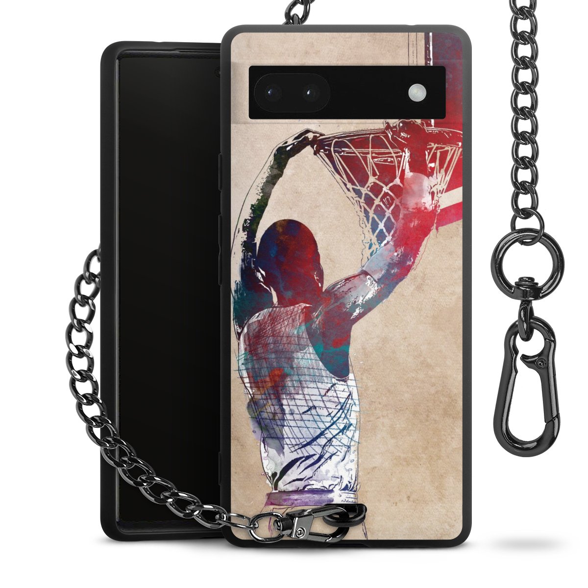 Die mattschwarze Silikon-Handyhülle besteht aus robustem TPU (thermoplastisches Polyurethan). Sie ist flexibel und schützt Dein Smartphone vor Stößen und Kratzern. Die Kette sowie der Karabinerhaken sind aus Metall in Gunmetal-Optik gefertigt. Für dieses Produkt kommen ausschließlich TÜV-geprüfte Materialien zum Einsatz.